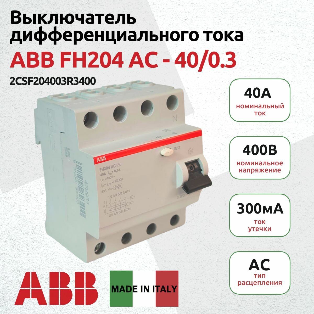 Устройство защитного отключения (УЗО) ABB FH204 AC 40/0,3 mA, 3-х фазное 40А 300mA