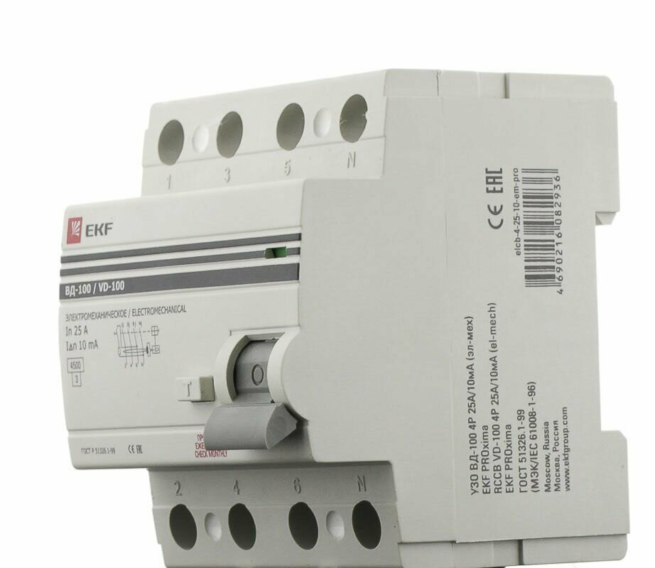 Устройство защитного отключения УЗО ВД-100 4P 25А-100мА (электромеханическое) EKF PROxima