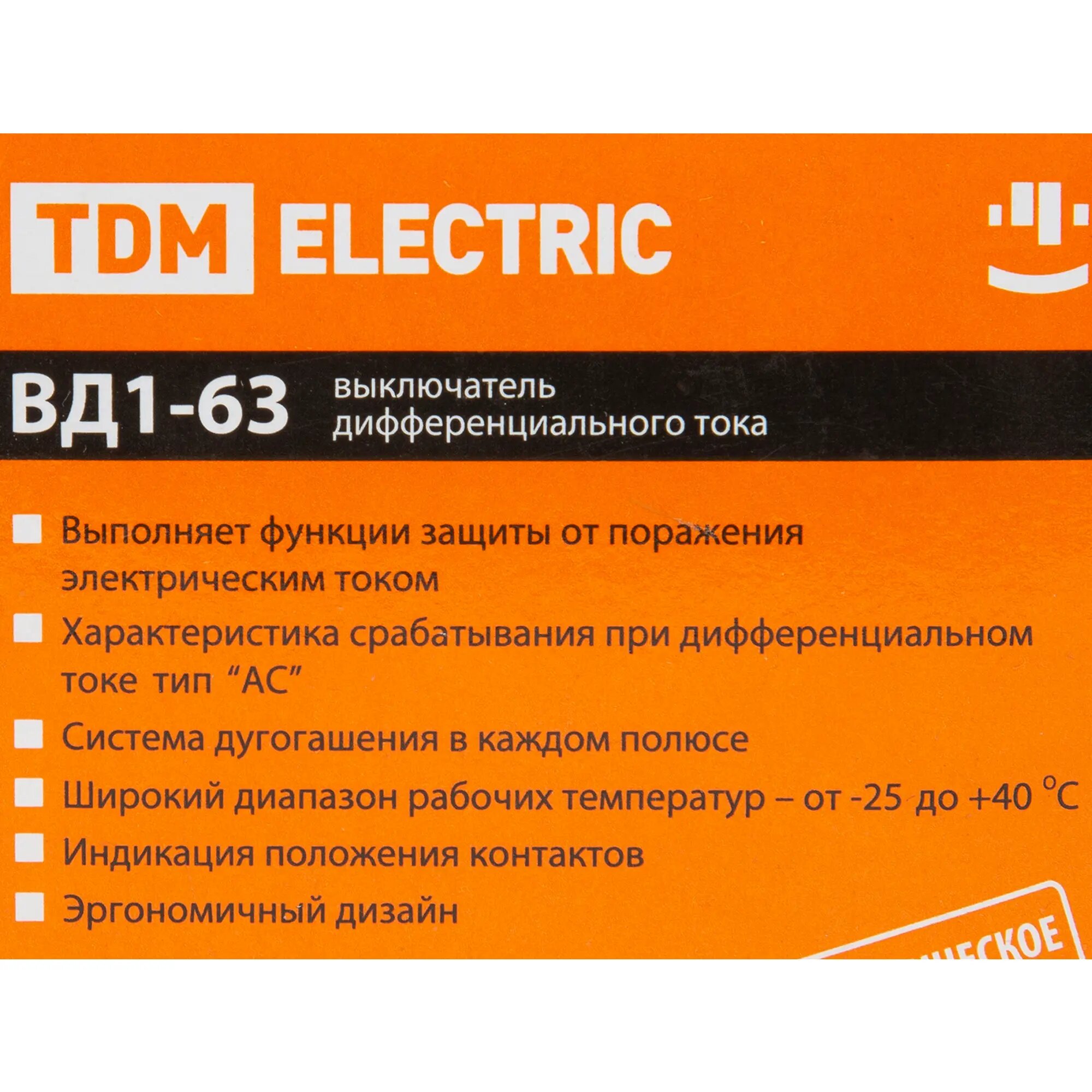 УЗО TDM ELECTRIC 100мА тип АС ВД1-63