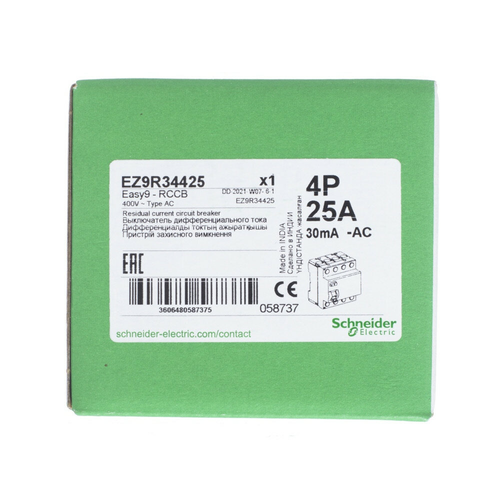 Ниже Вы можете прочитать отзывы на Устройство защитного отключения 4П 25А 30мА Schneider Electric Easy9 тип АС EZ9R34425, ознакомится с подробными характеристиками, посмотреть интересные обзоры и фотографии на Устройство защитного отключения 4П 25А 30мА Schneider Electric Easy9 тип АС EZ9R34425.