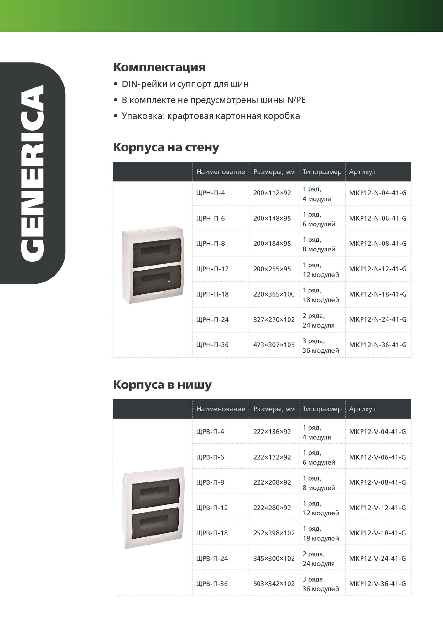 Щит распределительный ЩРН-п-18, Generica MKP12-N-18-41-G навесной, пластик, IP41