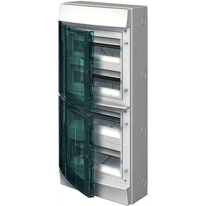 Бокс навесной ABB Mistral 41W 24 модуля (2x12) с клеммами, зелёная дверь 1SPE007717F0521