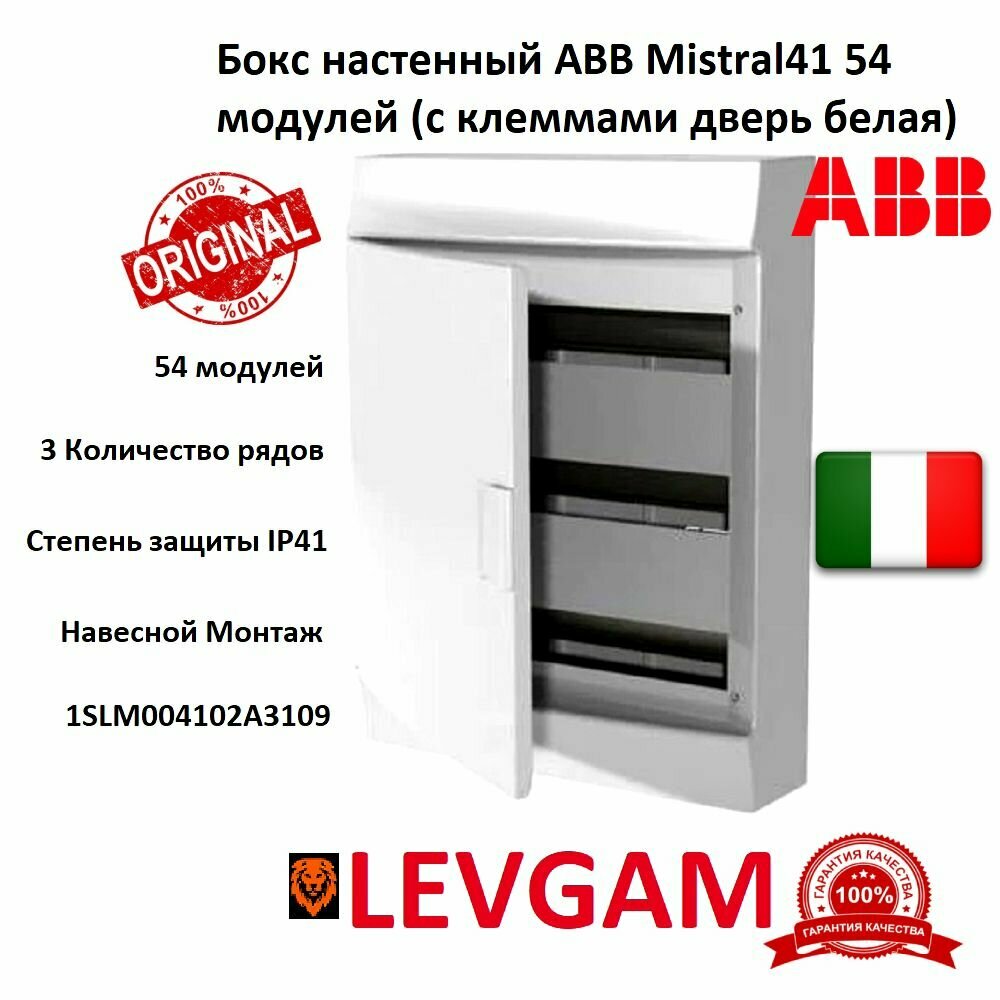 Купить Распределительный шкаф ABB Mistral 41 на 54 мод. (3*18), навесной, белая дверь, с клеммами 1SLM004102A3109