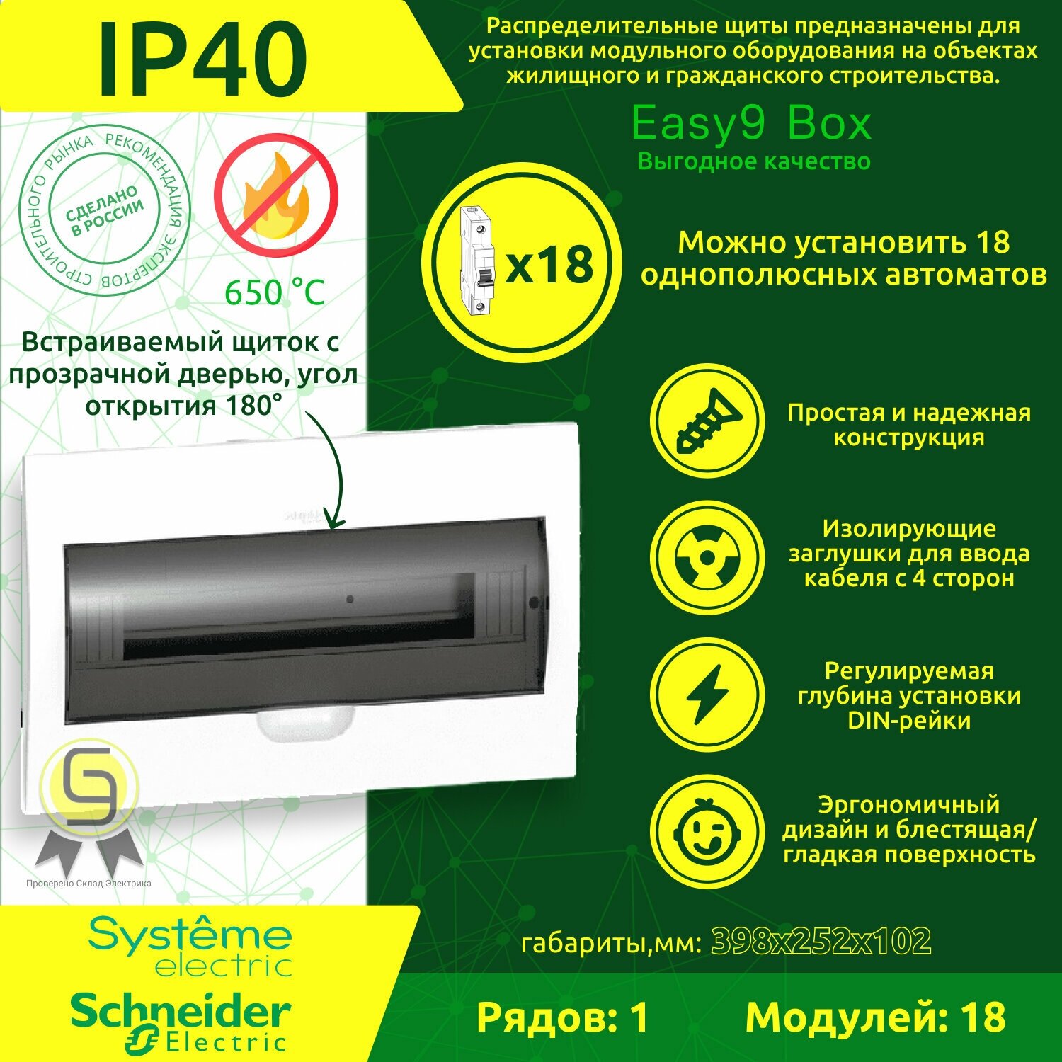 Бокс встраиваемый Systeme Electric (schneider Electric) SCHNEIDER ELECTRIC EASY 9 1ряд/18мод, IP40, IK07, 63А, 2 клеммы, белый