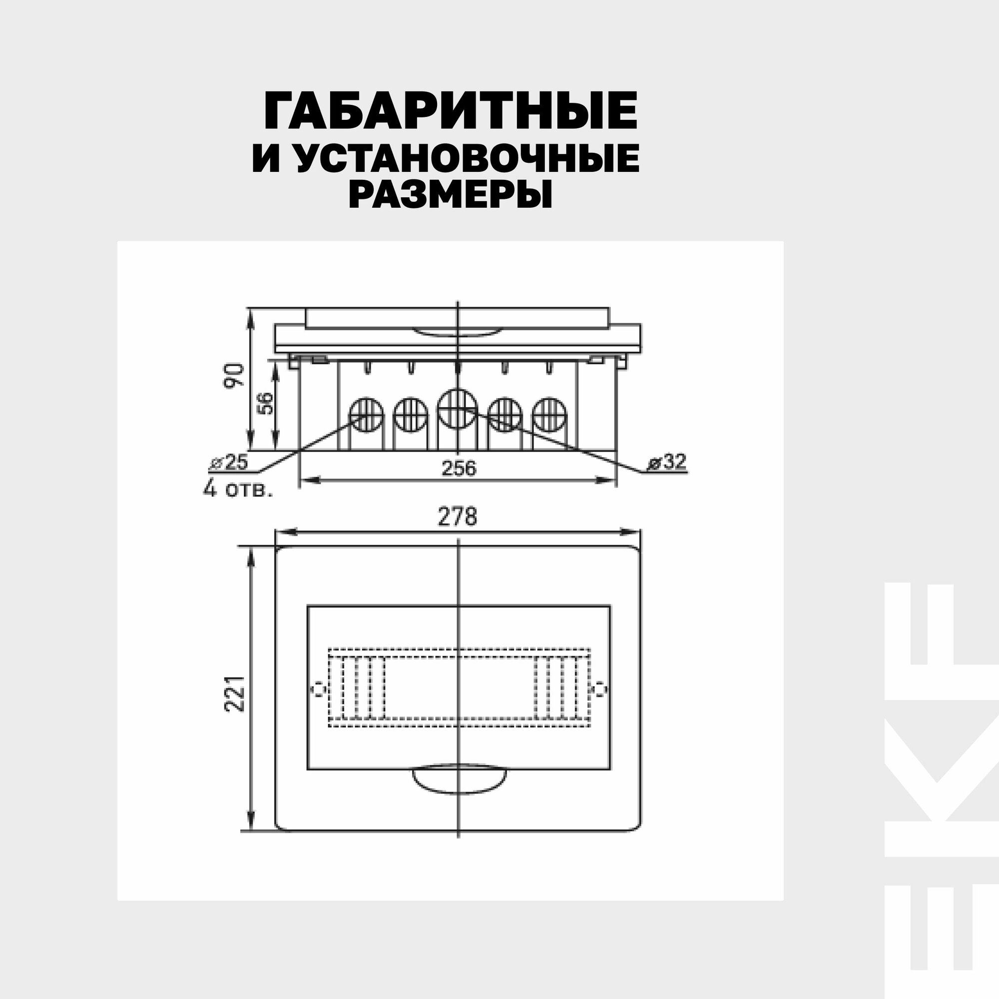 | Дополнительная информация | Количество вводов подробно - по 4 отверстия D25 мм и 1 отверстие D32 мм (сверху и снизу) |