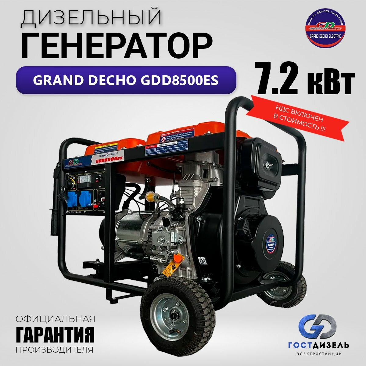 Дизельный генератор Grand Decho GDD8500ES (220В, 7.2 кВт) Со стартером и колесами в комплекте интересное: