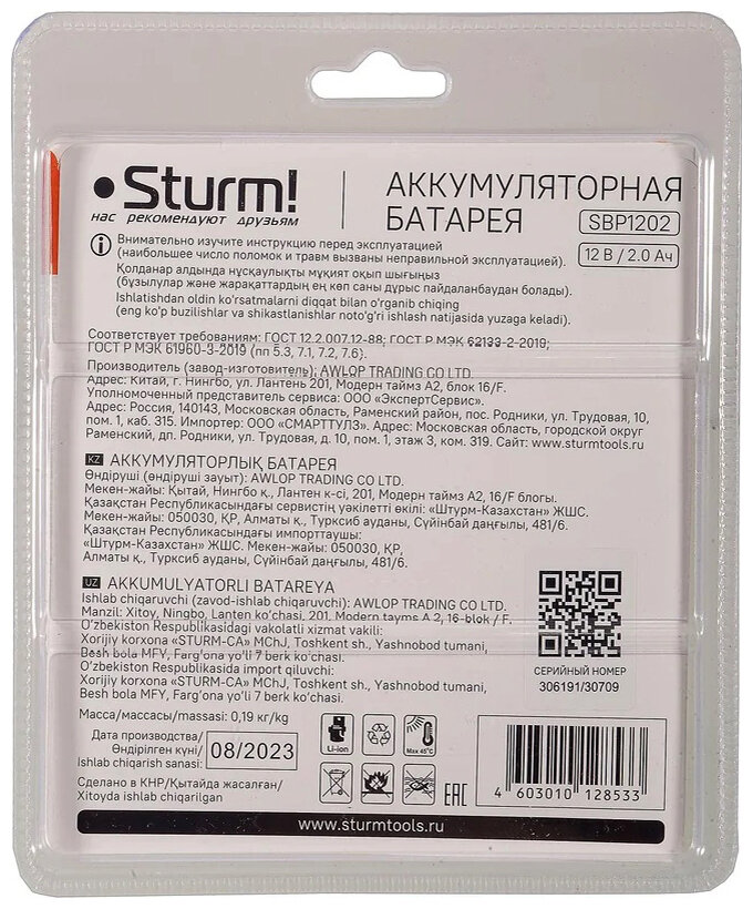 SBP1202 Аккумулятор Sturm!, 12В, 1BatterySystem12V интересное: