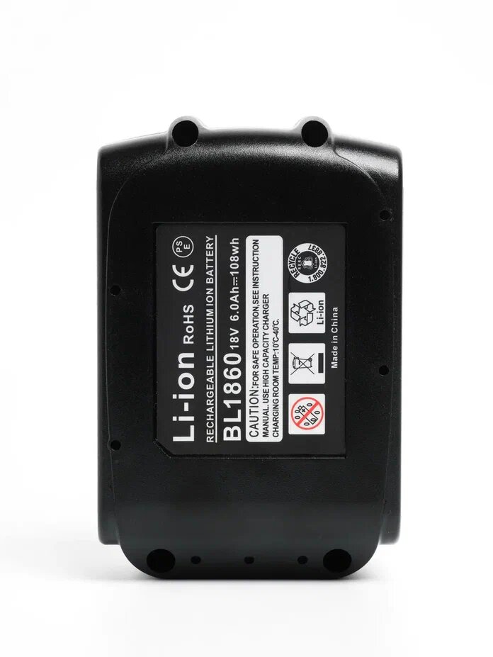 | Совместимость | Мakita BL1820; BL1825; BL1830; BL1830B; BL1835; BL1840; BL1840B; BL1850; BL1850B; BL1860; BL1860B; BDF451, BDF451Z, BDF452RFE, BDA350, BDF452SHE, BDF454RFE, BDF452Z, BDF451RFE, BDF452, BDA350Z; BTD140, BTD141, BTDW251Z, BTD140SFE, BTD140Z, BTD141Z, BTD144Z, BTD144, BTW251, BTW450, BTW450Z, 194204-5, 194205-3, 194309-1, 197265-4, 197280-8, 197422-4, 197423-2, 197599-5, 198311-60. |