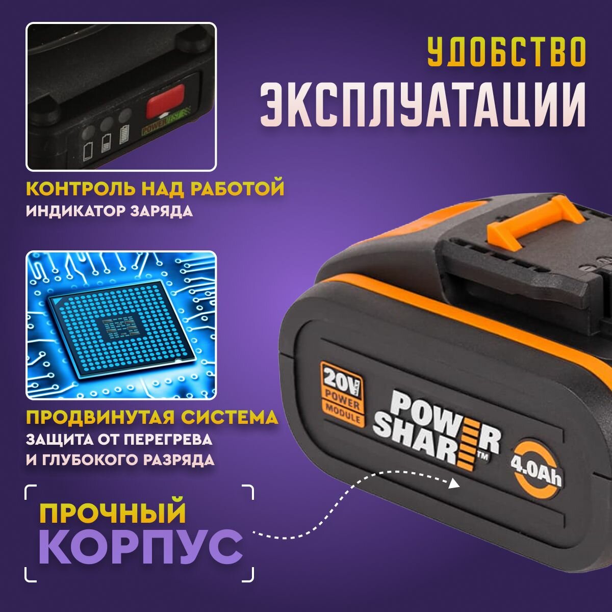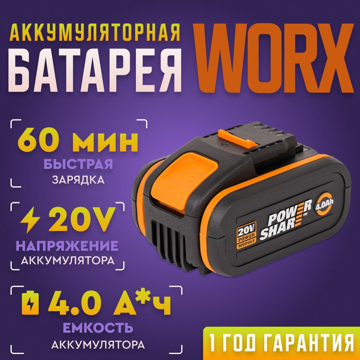 Аккумулятор Worx WA3553, 4 Ач, 20 В универсальный интересное:
