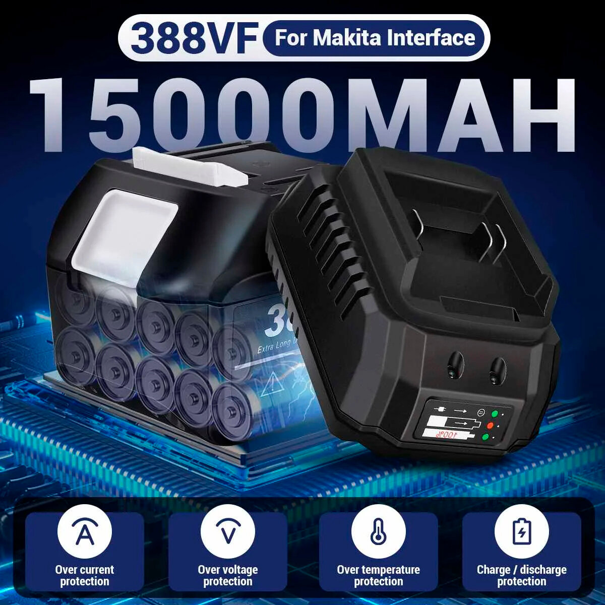 Зарядное устройство для аккумуляторов стандарта макита на 2Ah для аккумуляторного электроинструмента интересное:
