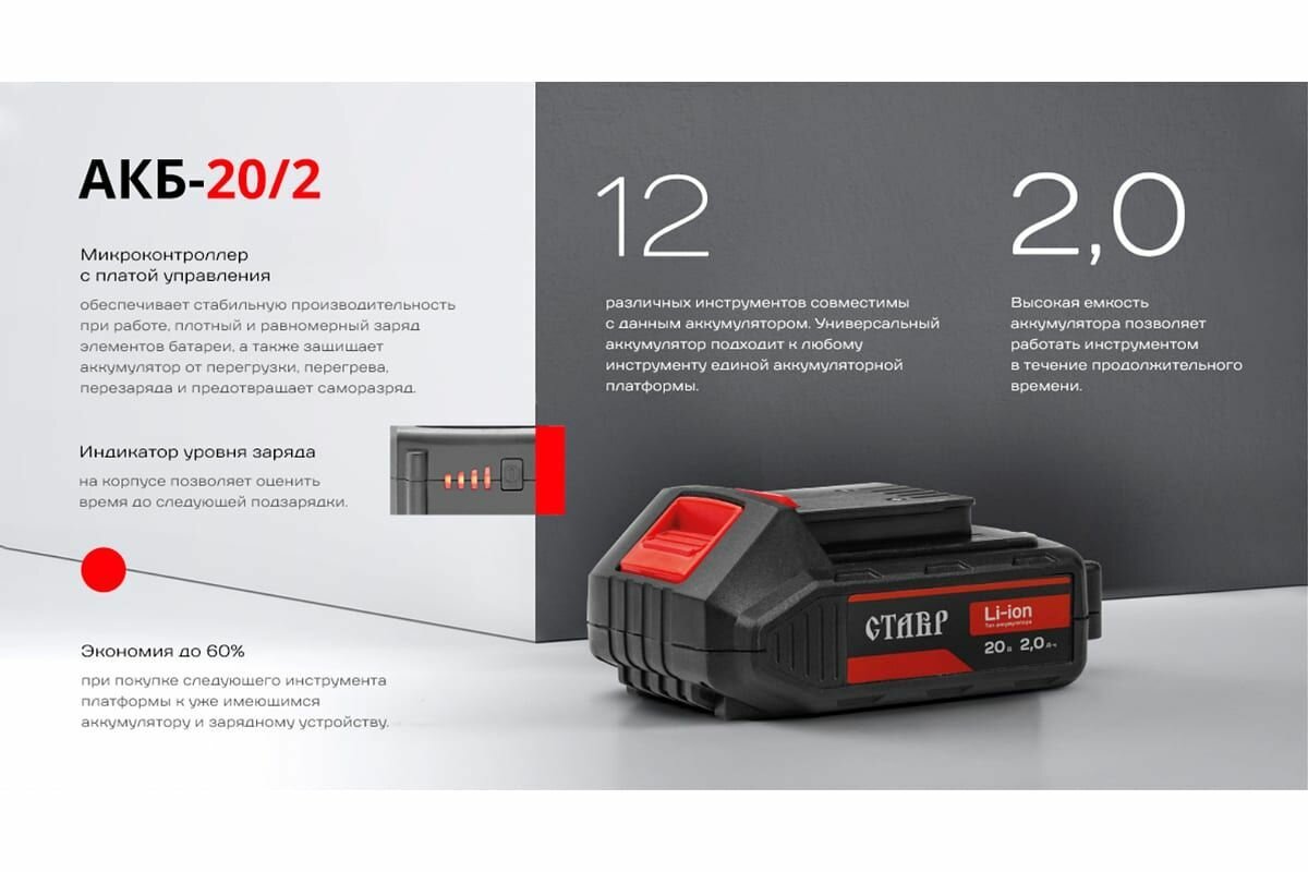 Аккумулятор ставр АКБ-20/2 2.0 ач li-ion интересное: