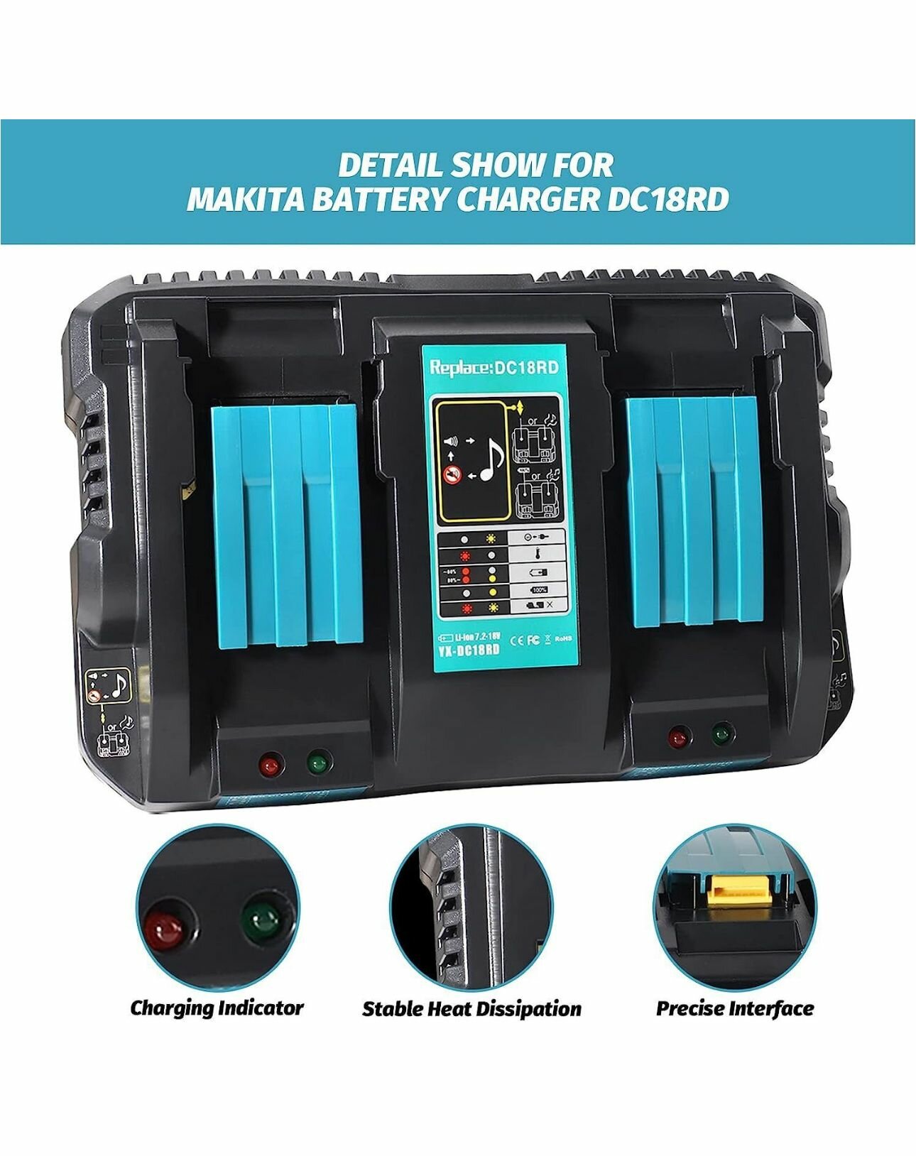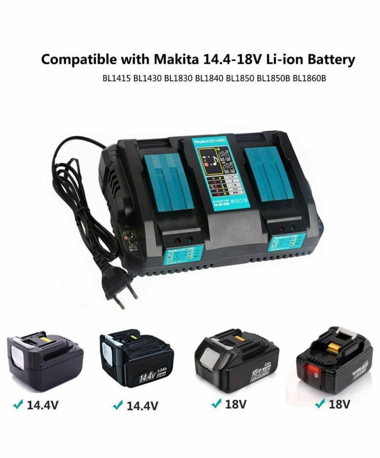 Купить DC18RC - Зарядное устройство 14.4v-18v. Подходит для зарядки литиевых аккумуляторов Makita Совместимо с BL1830 BL1840 BL1850 BL1815 (EU Plug)