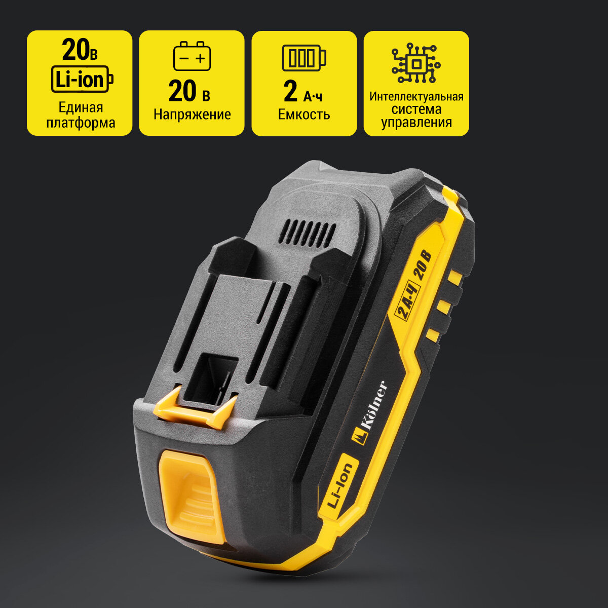 Аккумулятор KOLNER 20V Li-Ion KBL 20/2MKT, слайдер, 2 Ah, 1 шт