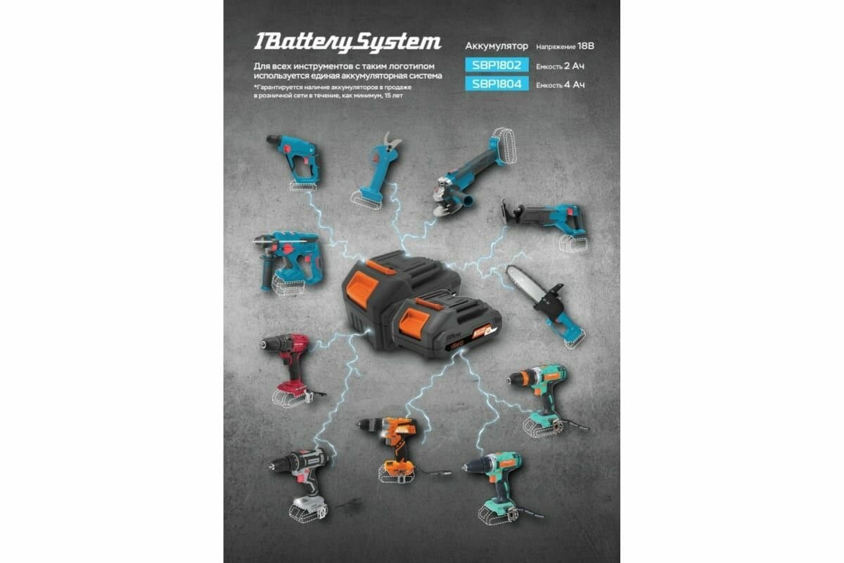 Аккумулятор 18В, 2А/ч, 1BatterySystem Sturm SBP1802
