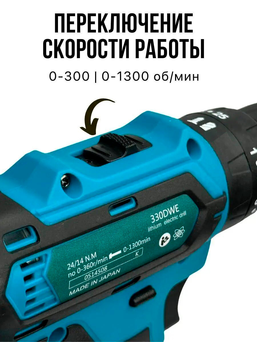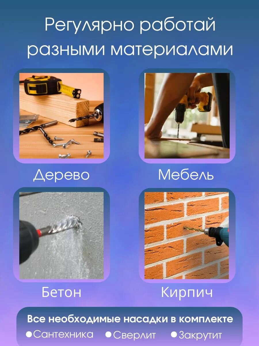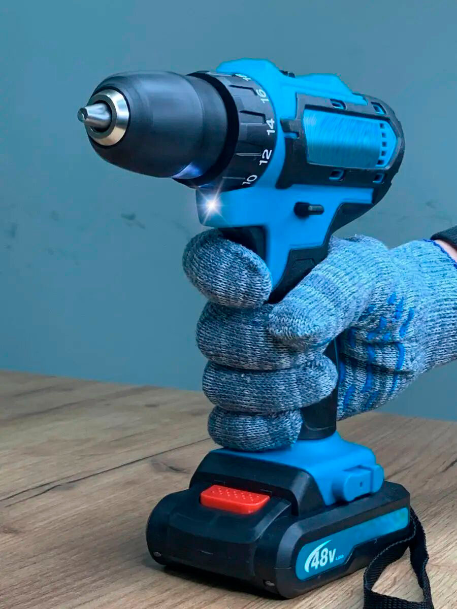 Аккумуляторная дрель-шуруповерт48V, в кейсе с набором оснастки + 2 аккумулятора интересное: