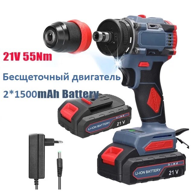 Аккумуляторная дрель-шуруповерт 21V со сьемным патроном, бесщеточная интересное: