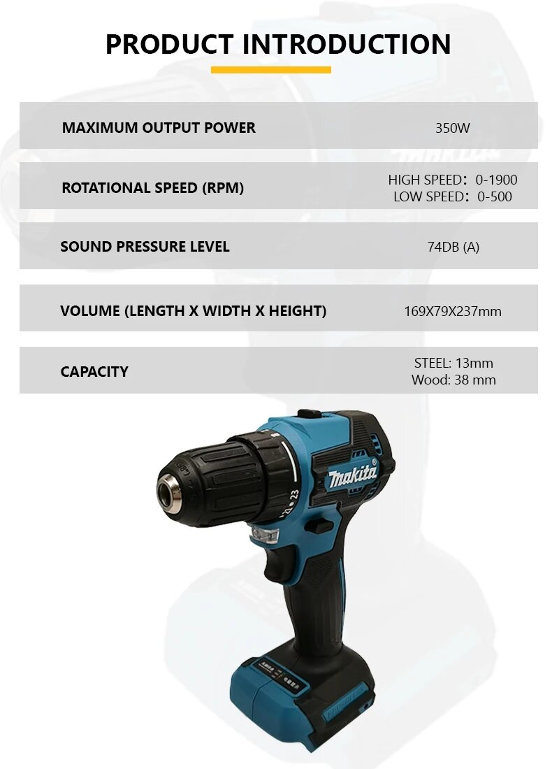 Компактная аккумуляторная дрель Makita DDF485 10 мм LXT интересное: