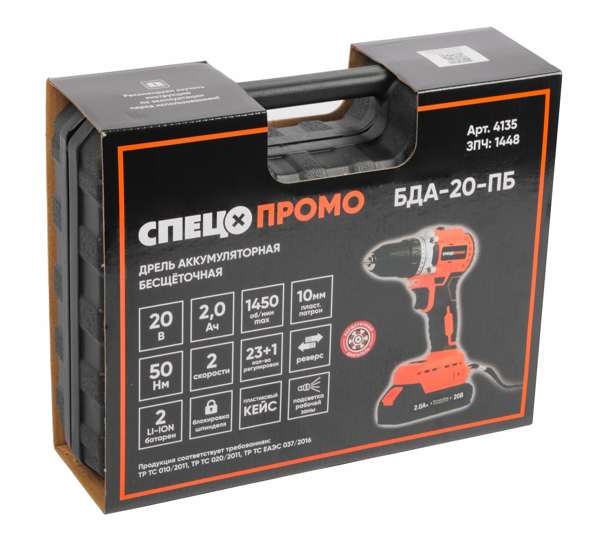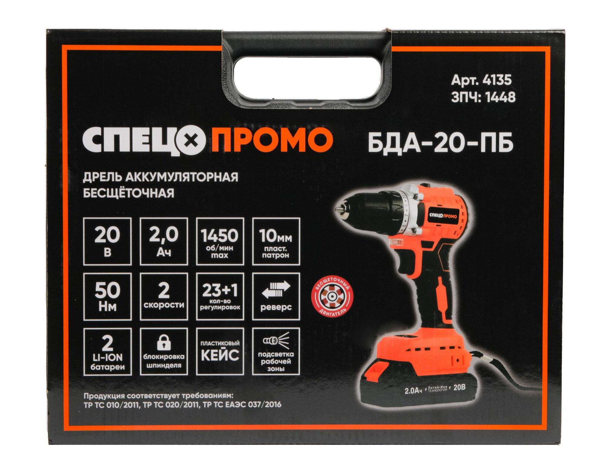 Дрель-шуруповерт аккумуляторная бесщеточная Спец БДА-20-ПБ, 20 В Li-ion 2x2 Ач интересное: