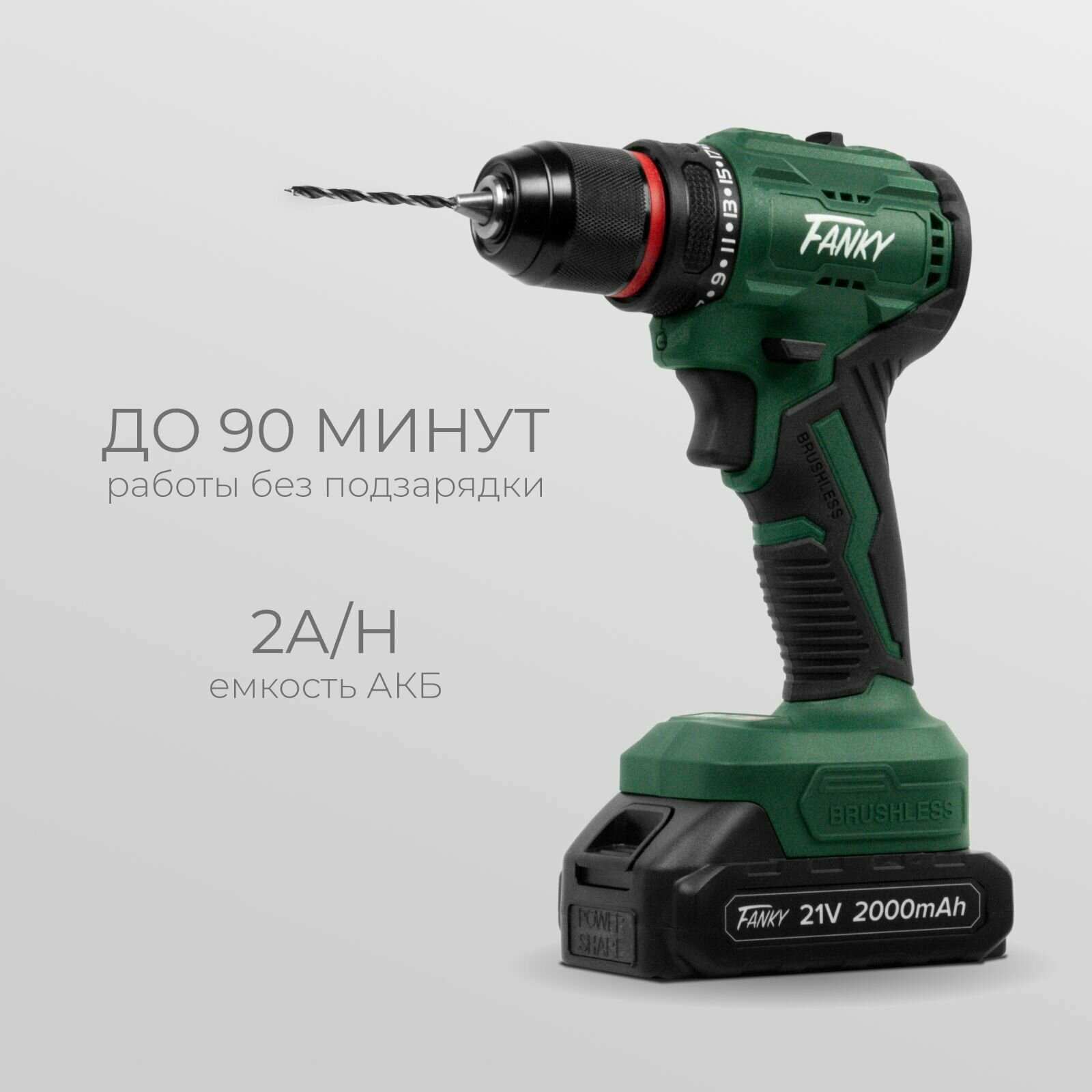 Шуруповерт аккумуляторный бесщеточный Fanky 1 АКБ дрель мощная 21В