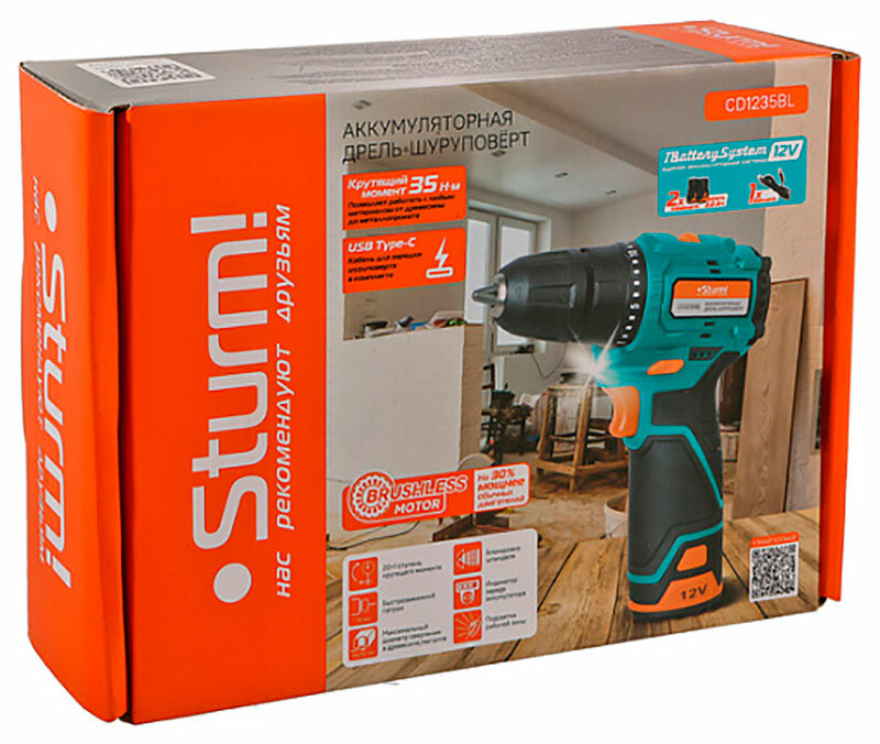 Дрель-шуруповерт аккумуляторная бесщеточная Sturm CD1235BL интересное: