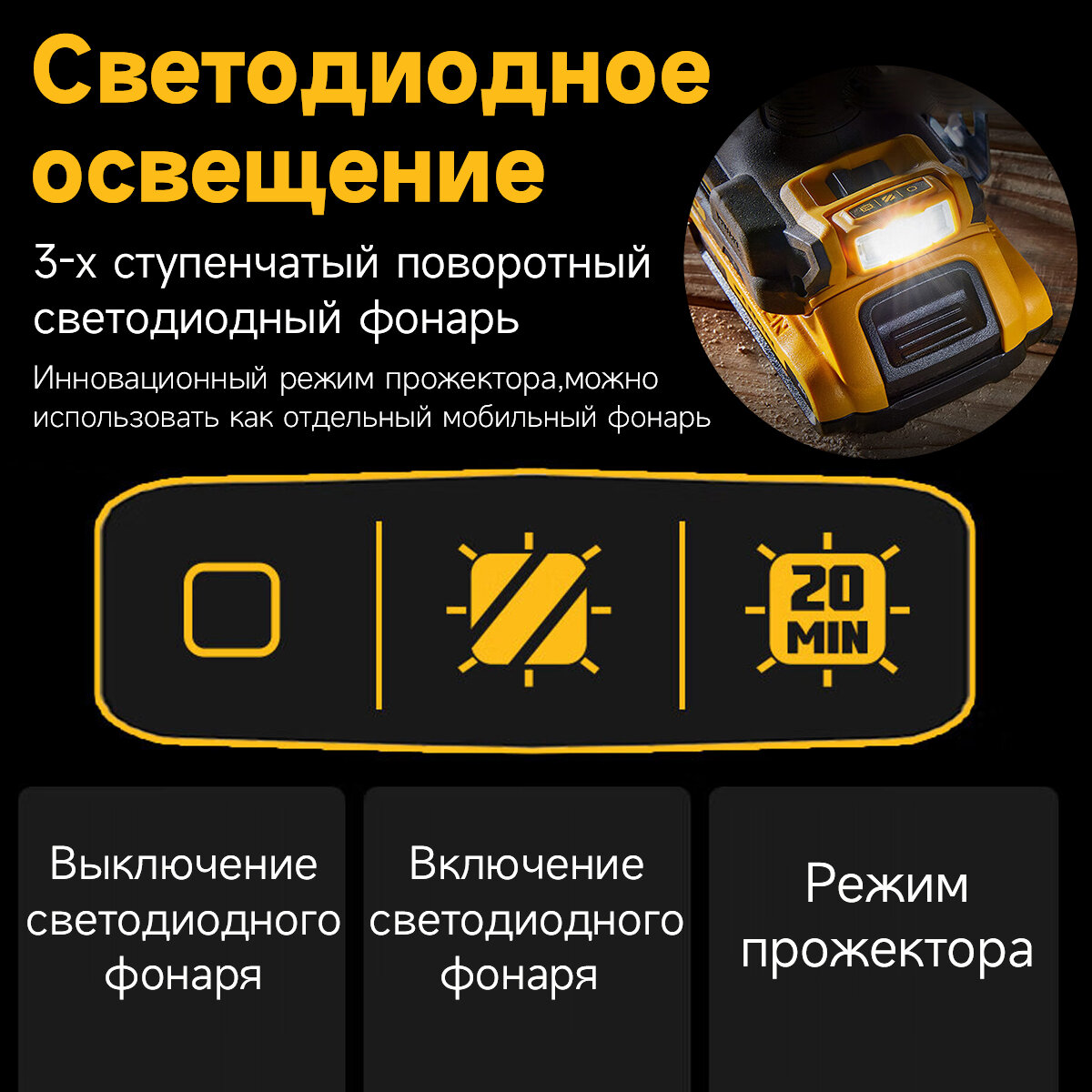 | Особенности конструкции | блокировка кнопки включения / использование бит без патрона / лампа точечной подсветки / магнитный держатель на корпусе |