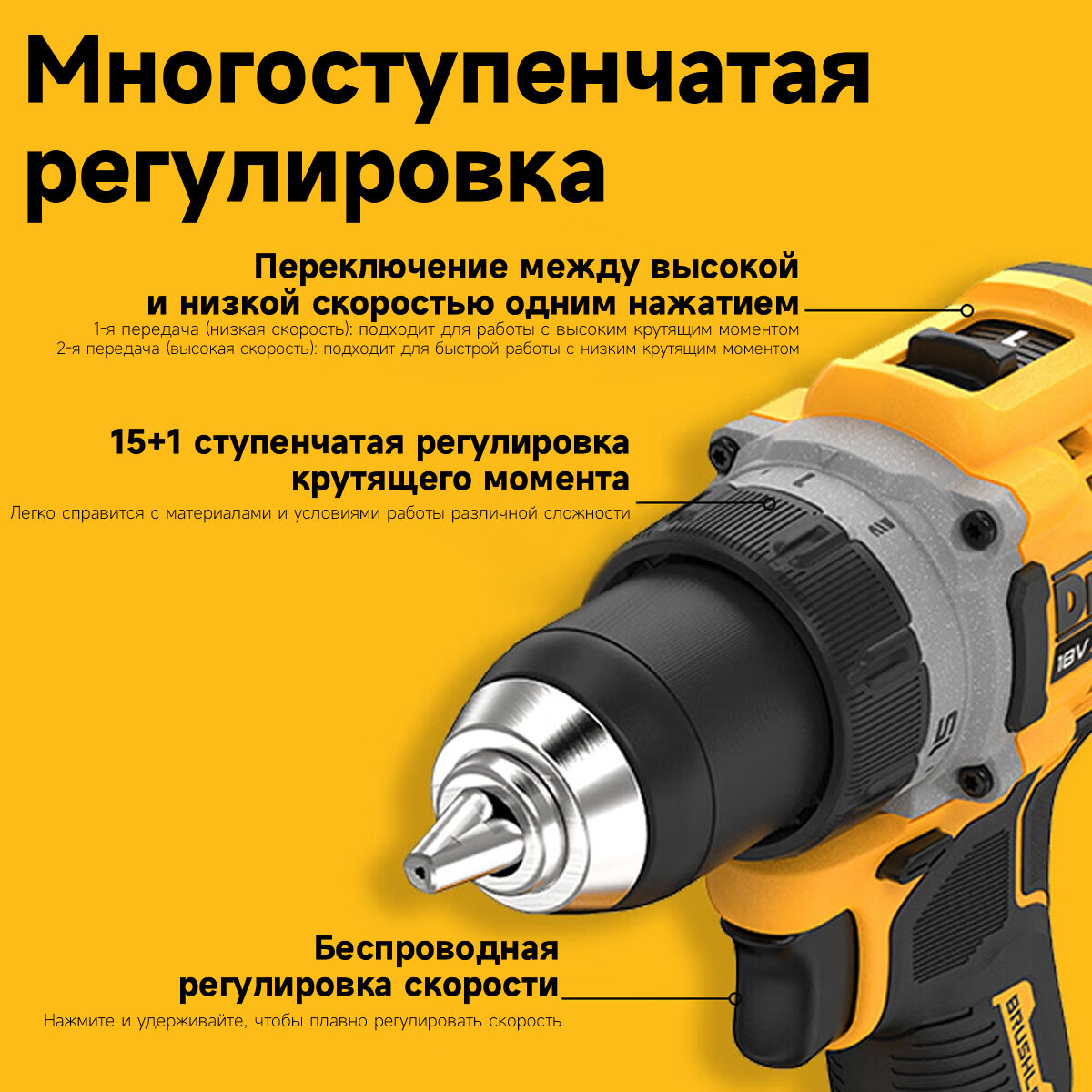 | Особенности | 6-гранный держатель 1/4 ; выходная мощность 400 Вт |