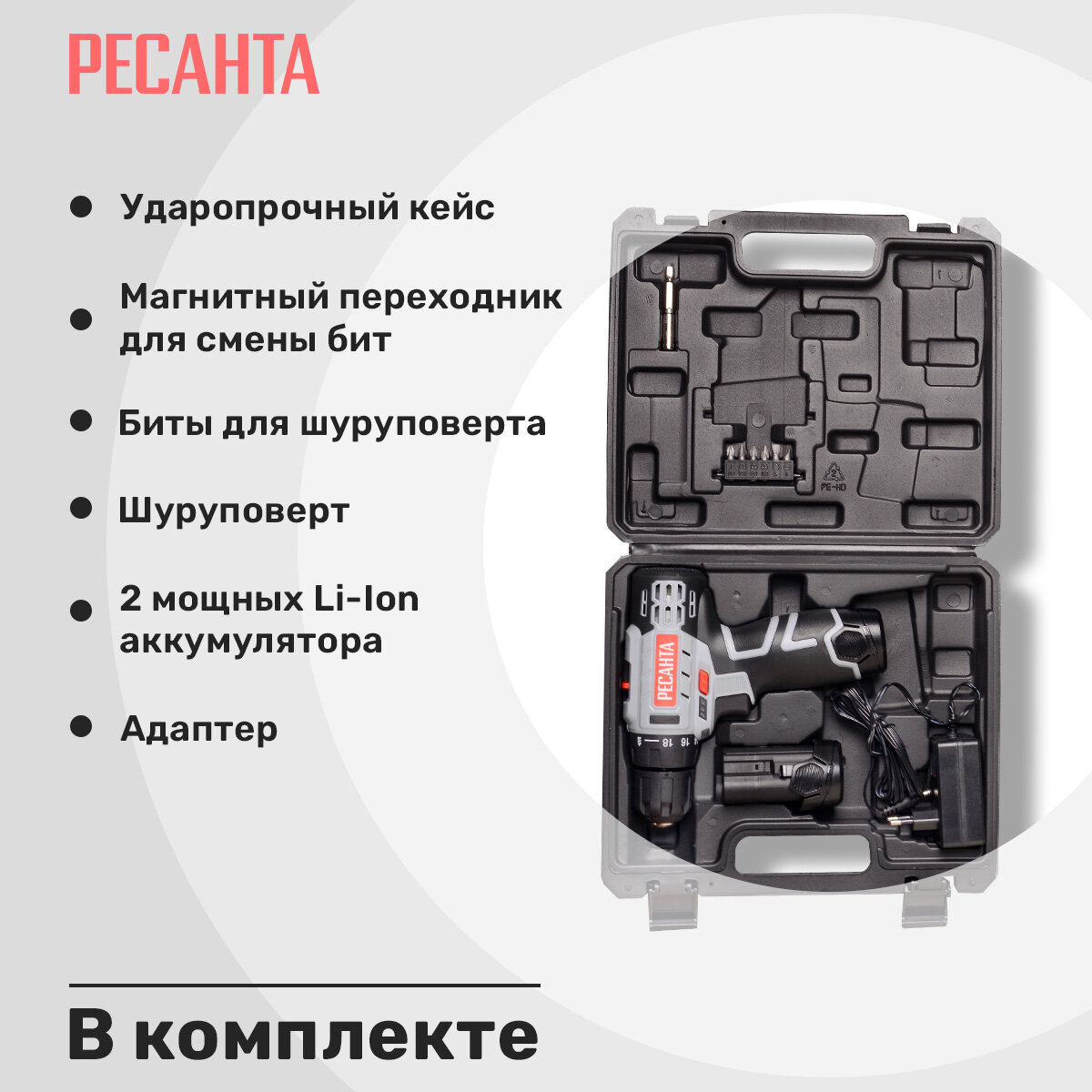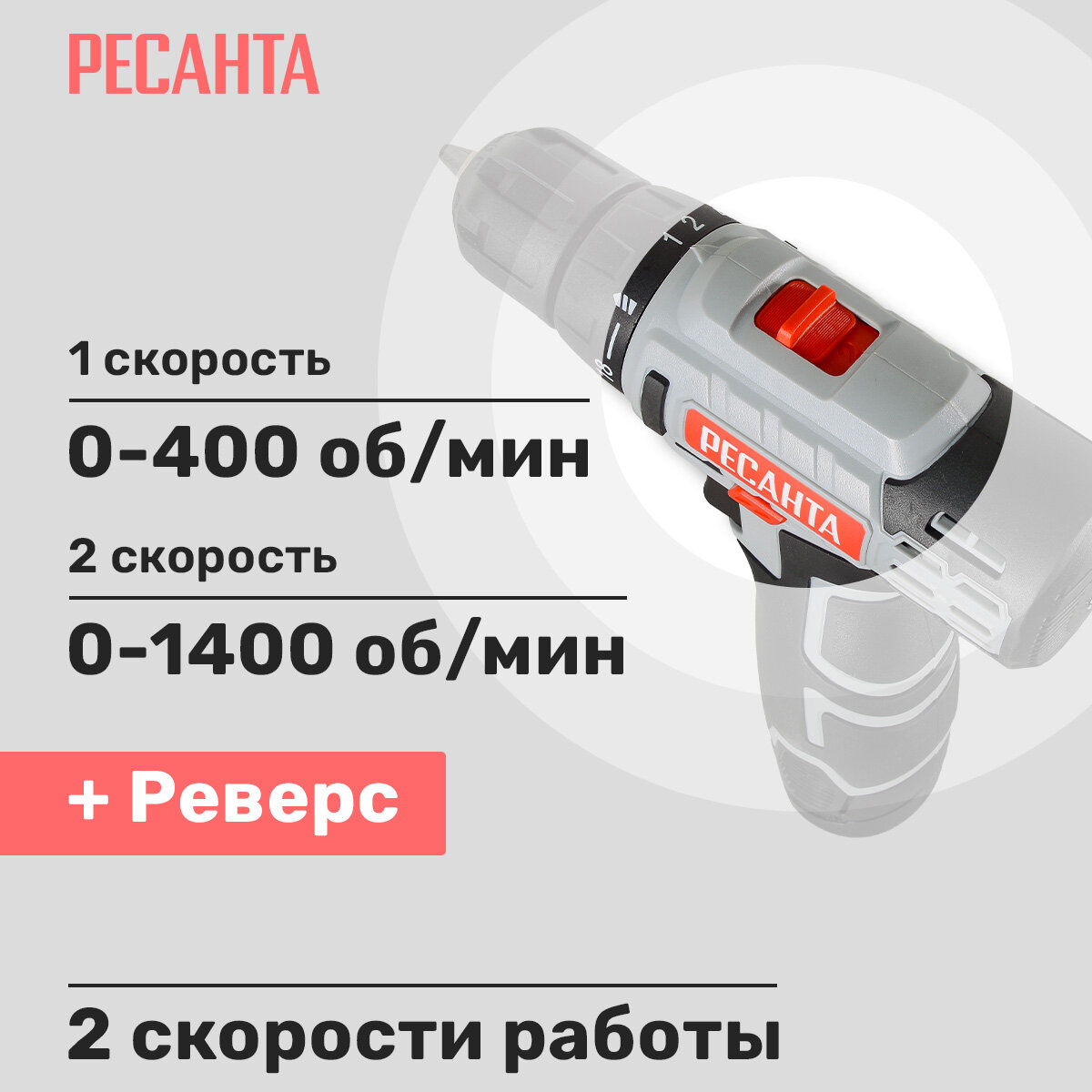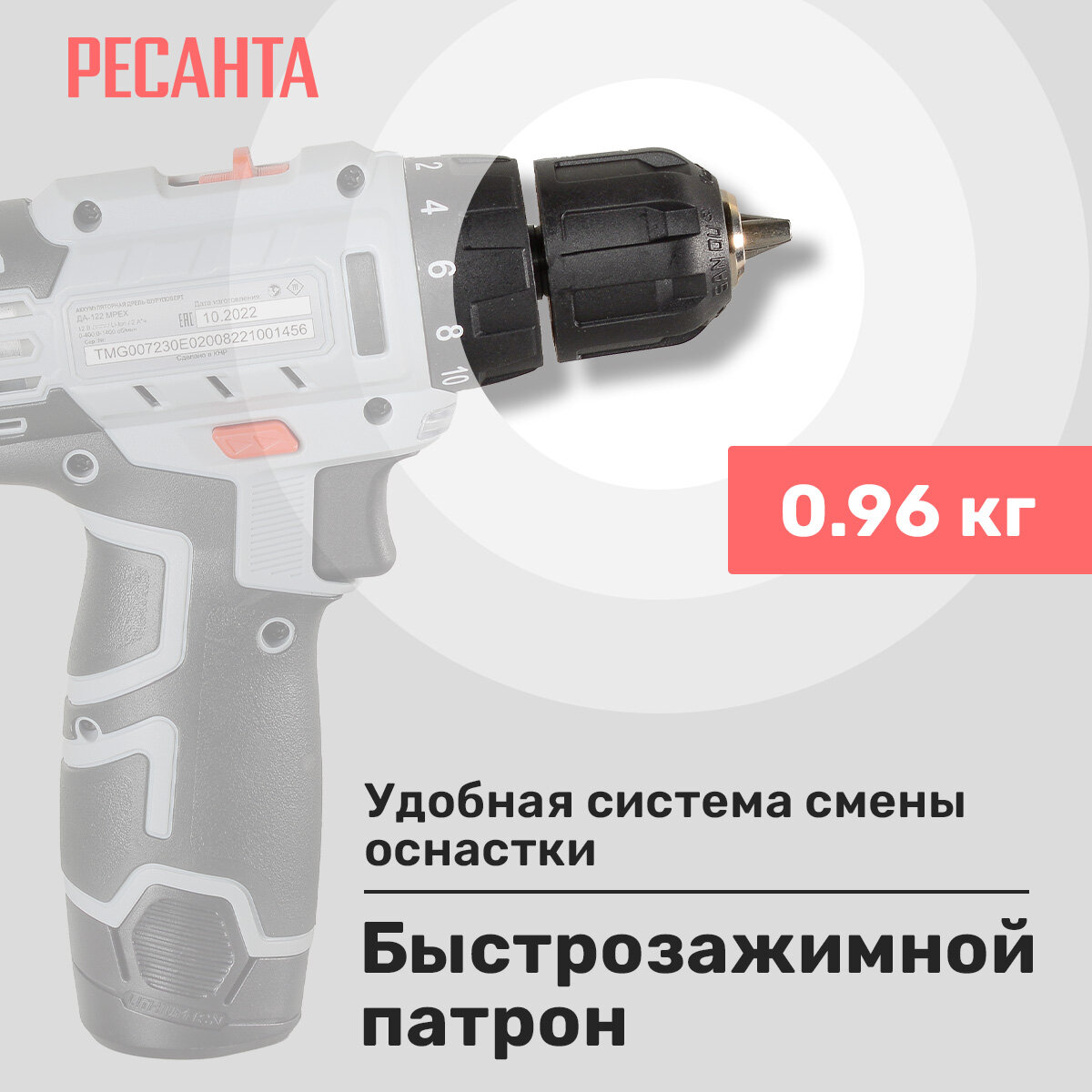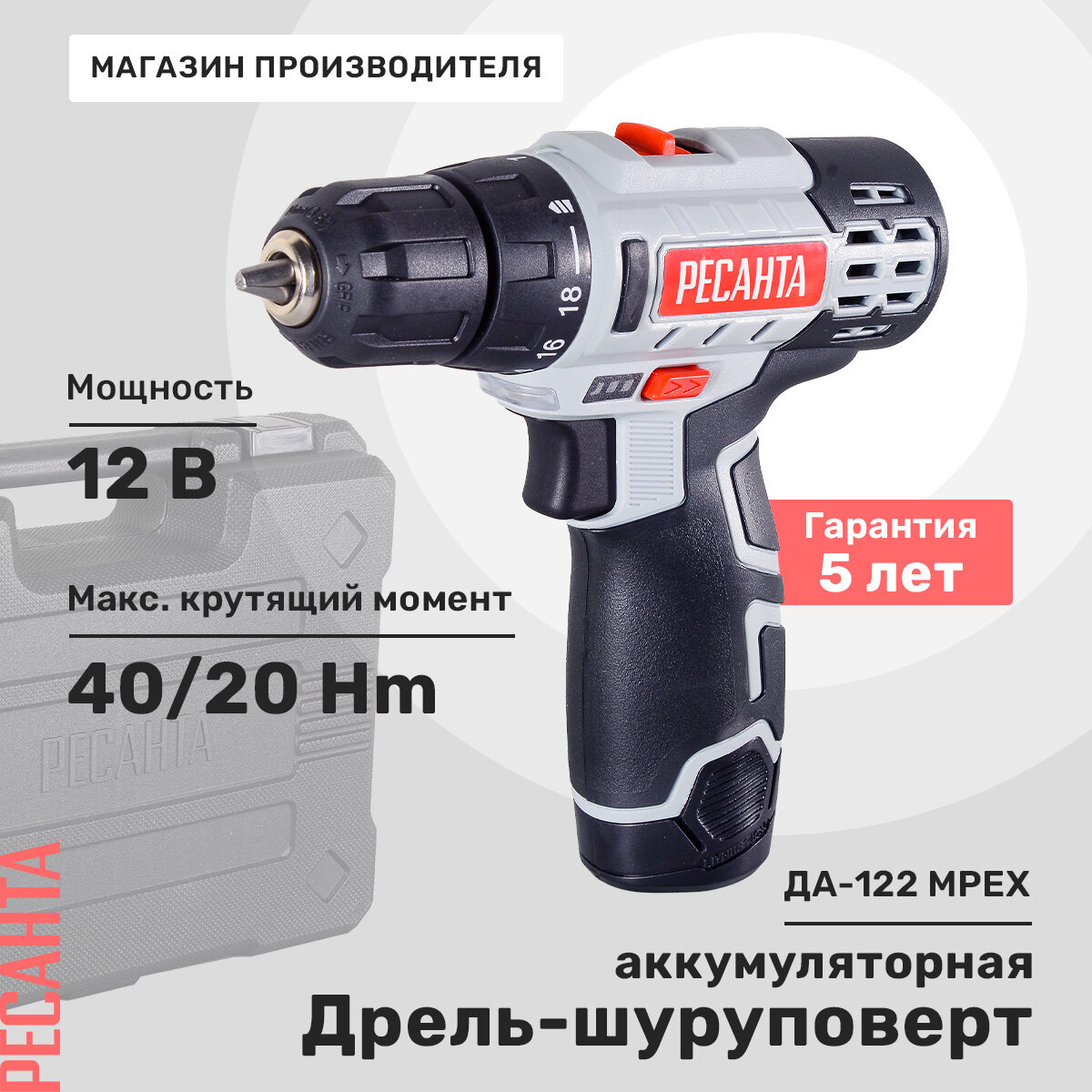 Купить Шуруповерт - дрель аккумуляторная Ресанта ДА-122 MPEX (быстрозажимной, 1400 об/мин, 40/20 Нм, 12 В, 2 А*ч, 0.96 кг, кейс)