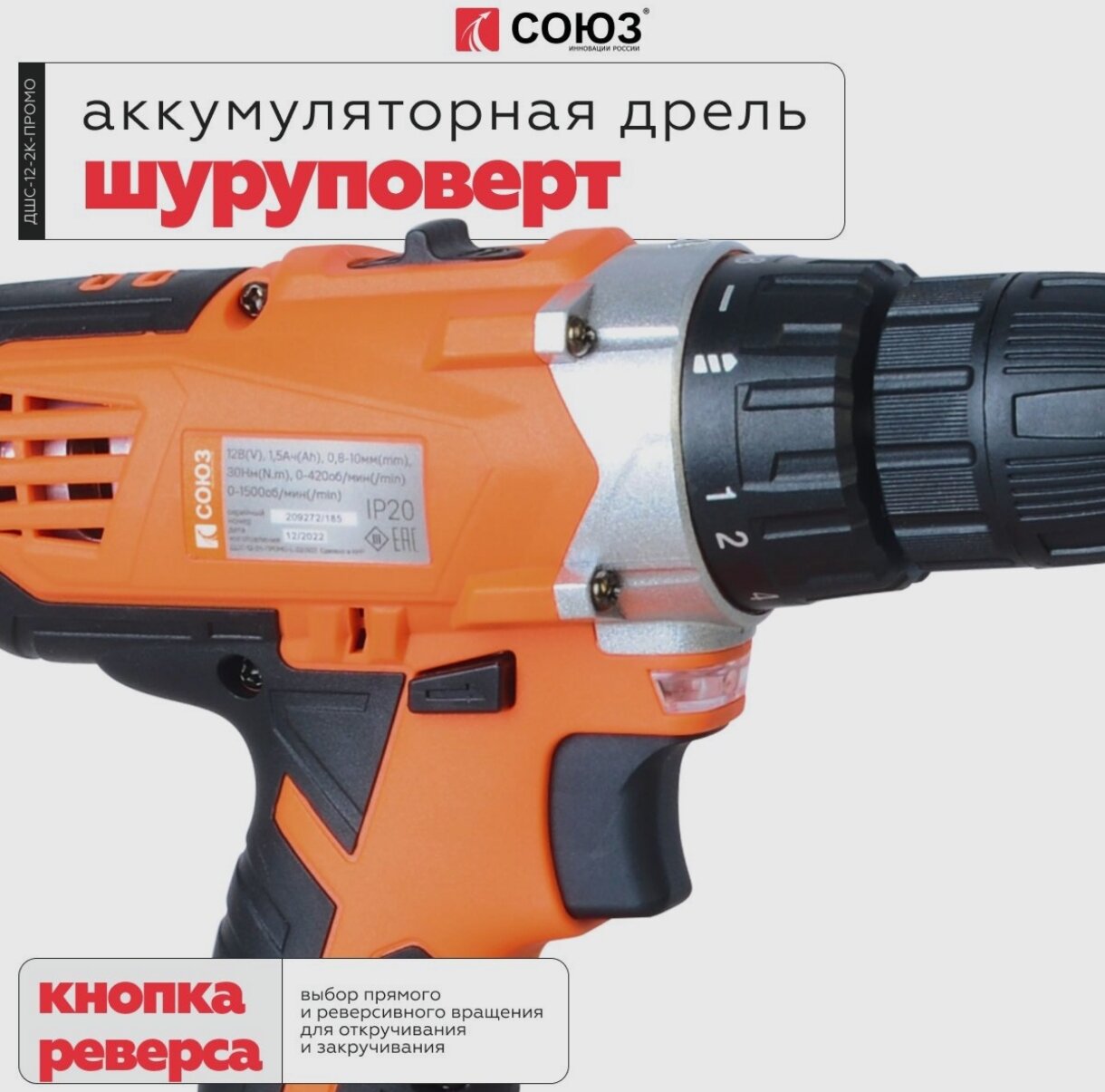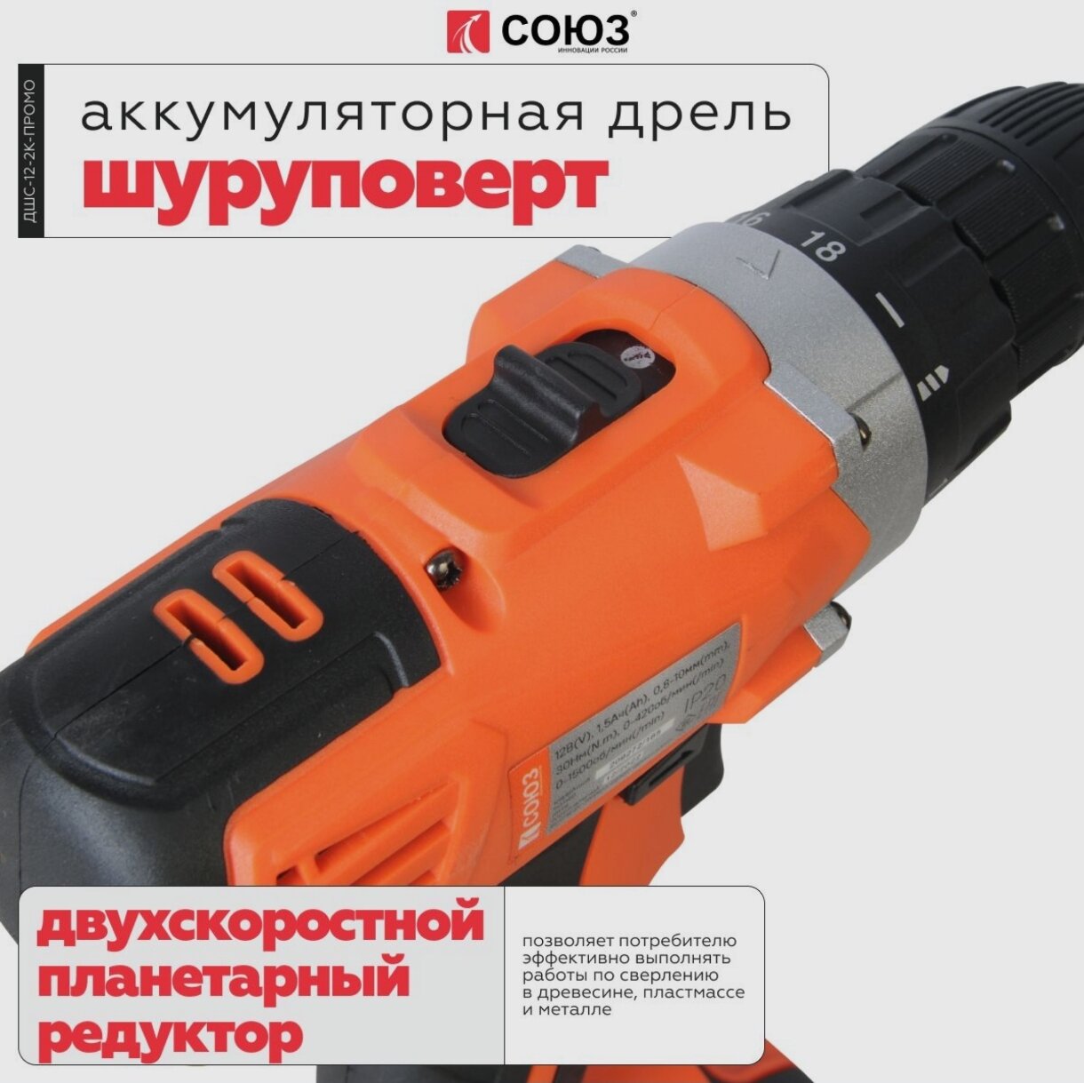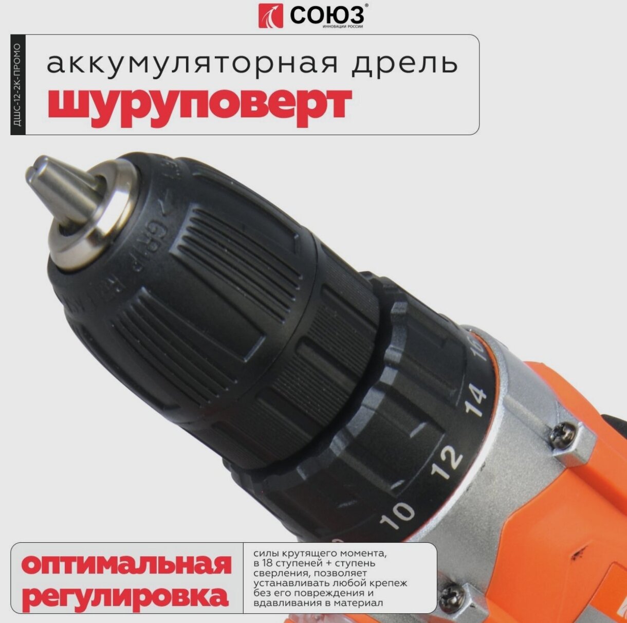 Аккумуляторный шуруповерт СОЮЗ ДШС-12-2К-ПРОМО интересное: