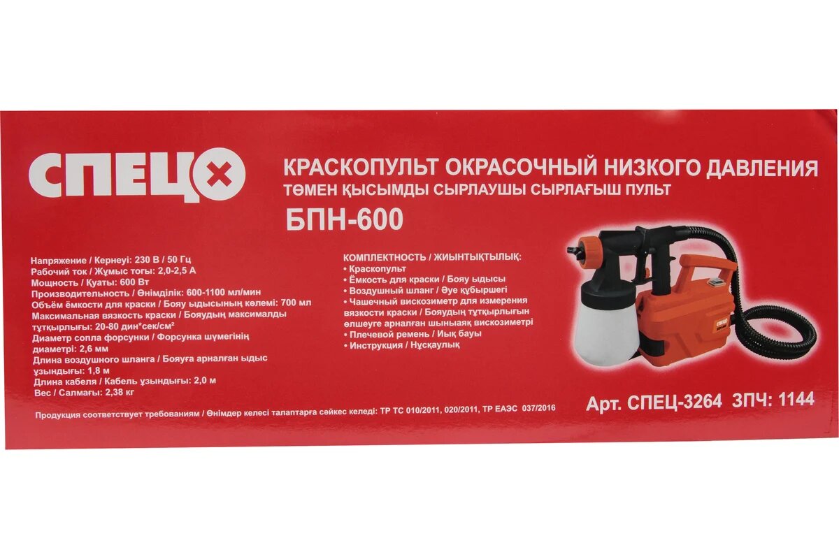 Краскопульт Спец БПН-600, 600 Вт, 1100 мл/мин.