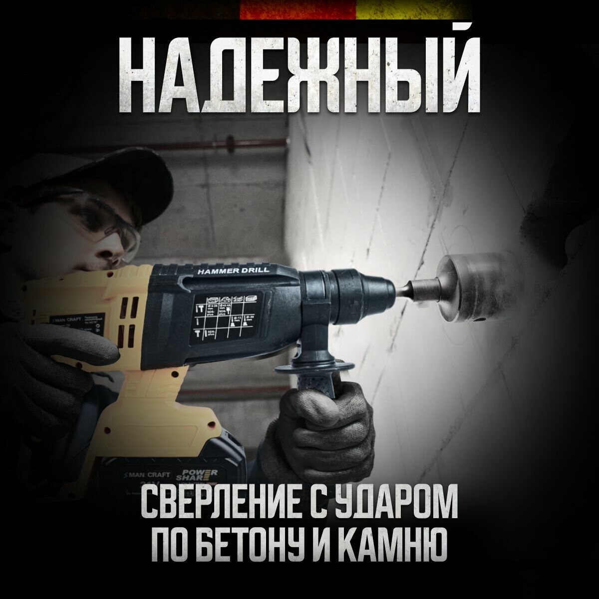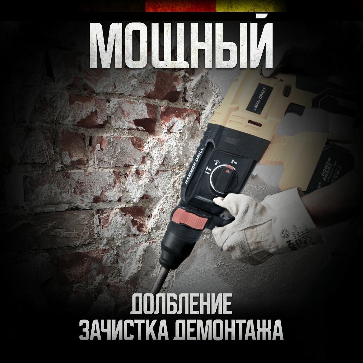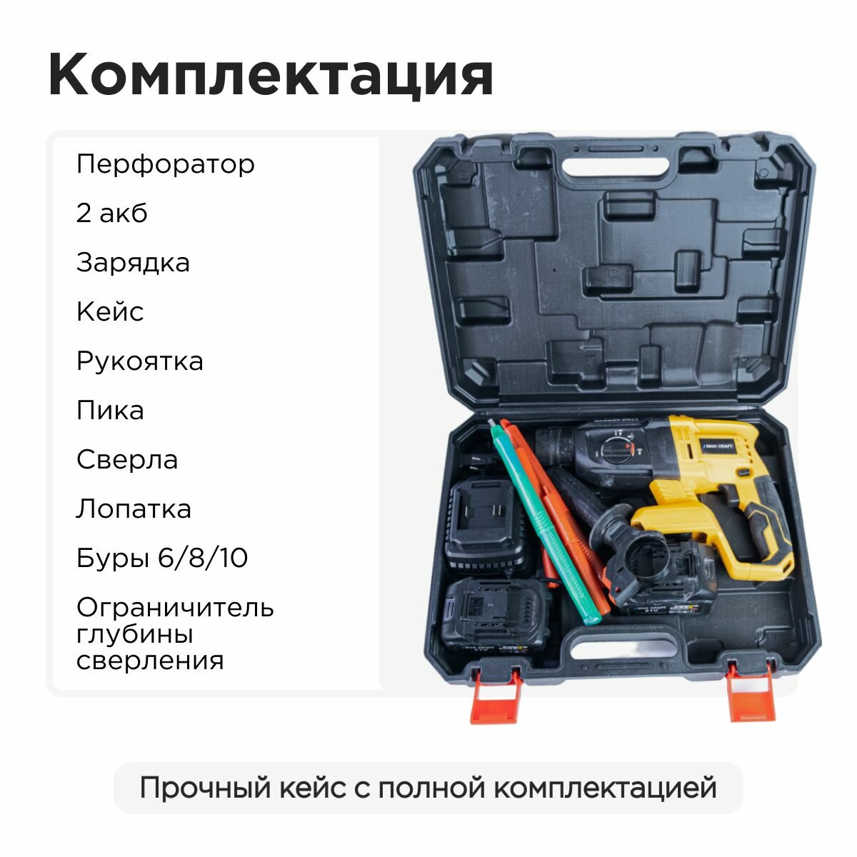 Аккумуляторный перфоратор в кейсе MANCRAFT 2 акк, 4 Ач, 3,2 Дж, 1300 об/мин интересное: