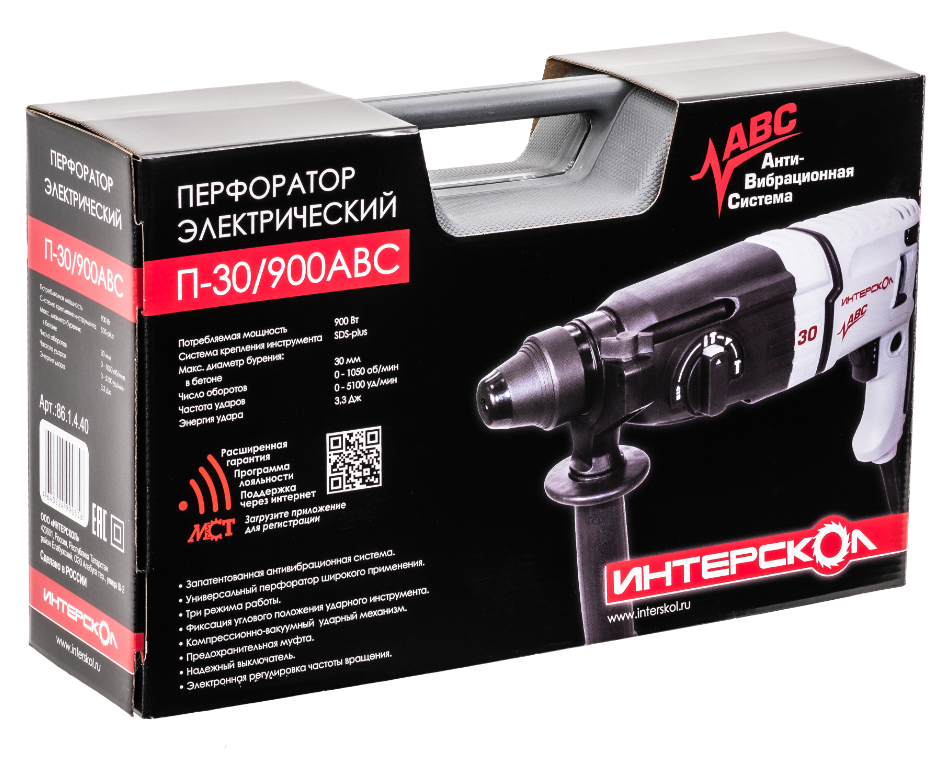 Трехрежимный перфоратор с антивибрацией ИНТЕРСКОЛ П-30/900АВС интересное: