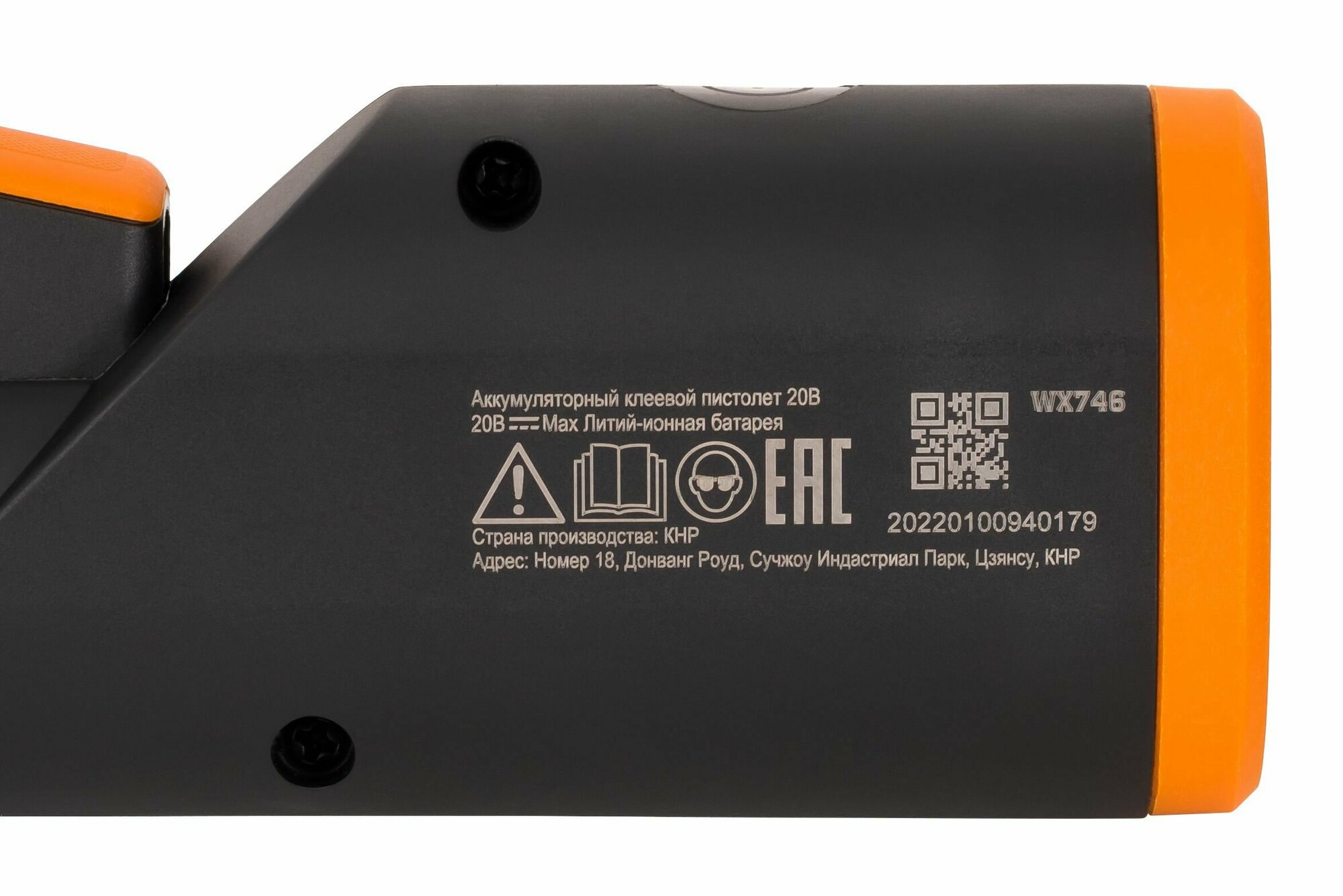 Клеевой пистолет аккумуляторный WORX WX746.9 20В без АКБ и ЗУ интересное: