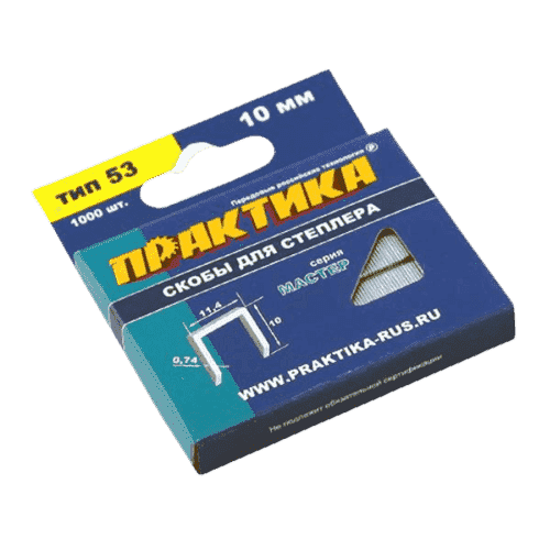 Скобы ПРАКТИКА для степлера, серия Мастер, 10 мм, Тип 53, толщина 0,74 мм, ширина 11,4 м (037-305)