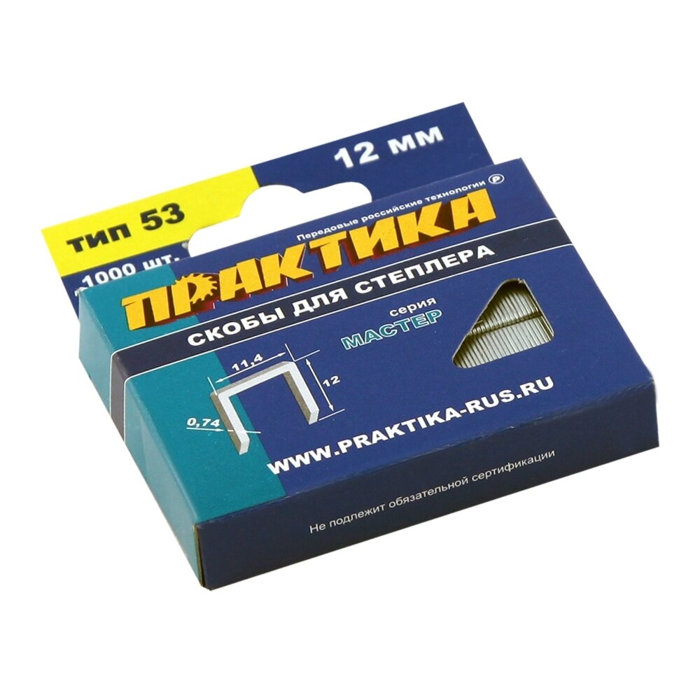 Скобы ПРАКТИКА для степлера, серия Мастер, 10 мм, Тип 53, толщина 0,74 мм, ширина 11,4 м (037-305)