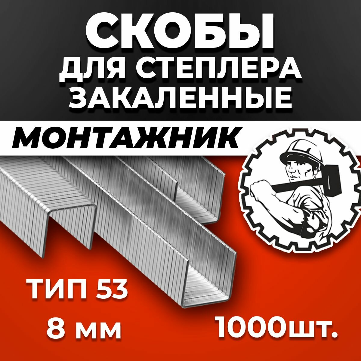 Скобы для степлера строительного, мебельного, тип 53, 8 мм, уп.1000 шт., Монтажник