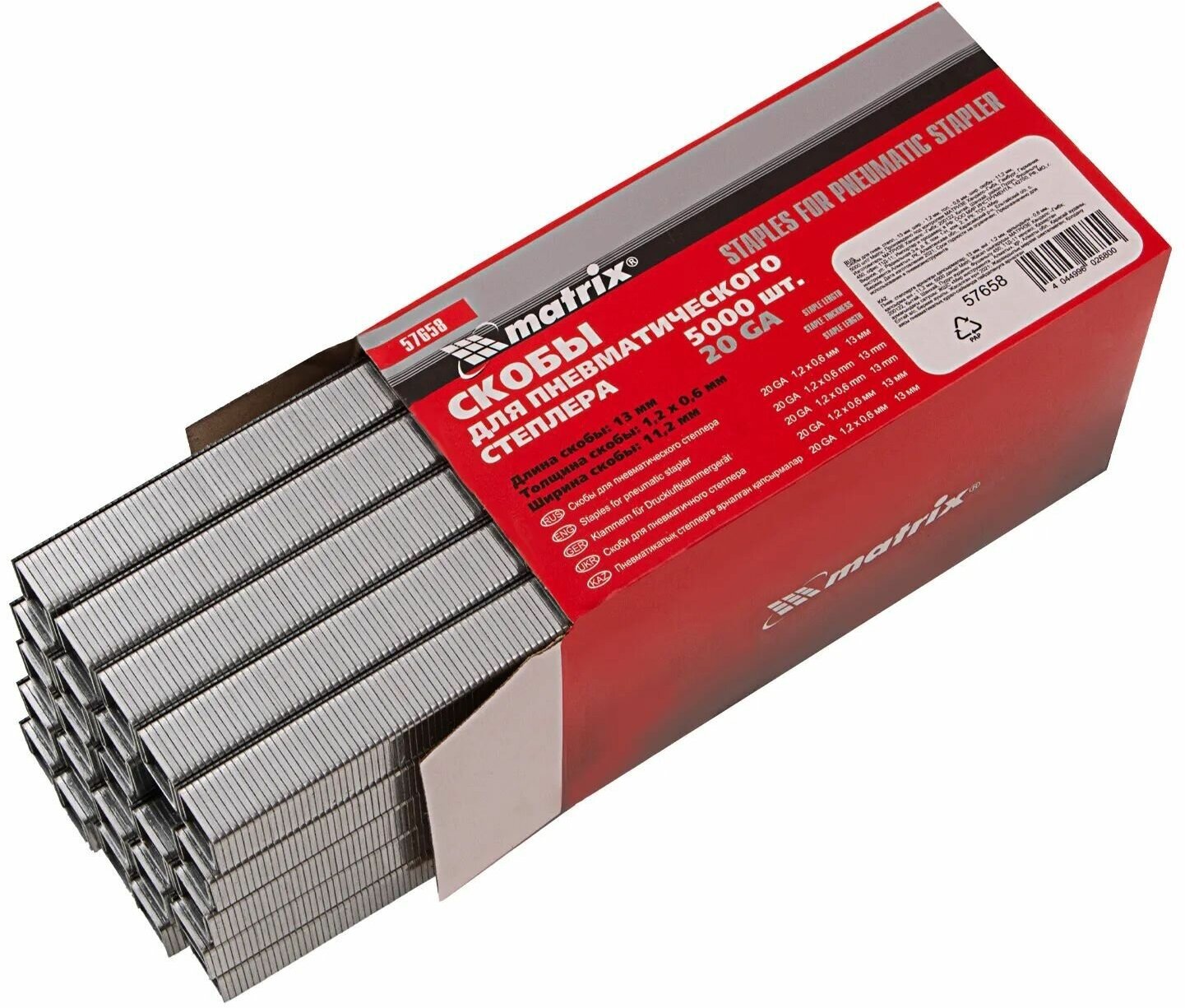 Купить Скобы 20GA для пневматического степлера, 13 мм, ширина 1.2 мм, толщина 0.6 мм, ширина скобы 11.2 мм, 5000 шт Matrix