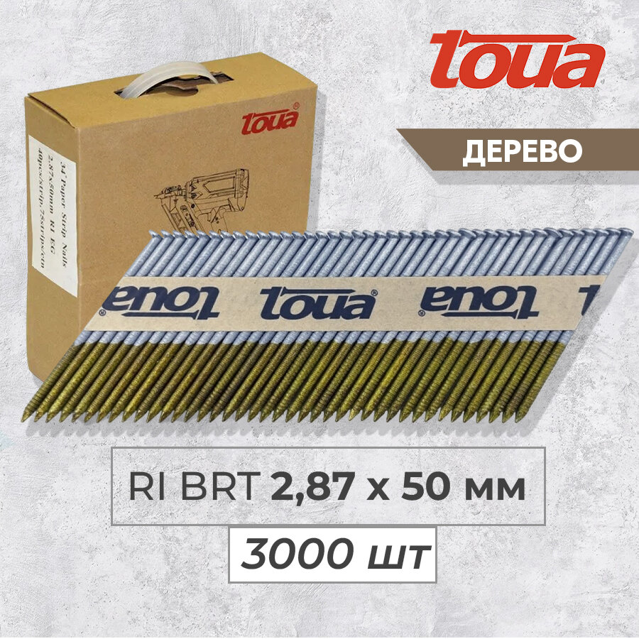Купить Гвоздь по дереву Toua D34 2,87х50 мм Ri Brt, 3000 шт, для монтажного пистолета, нейлера