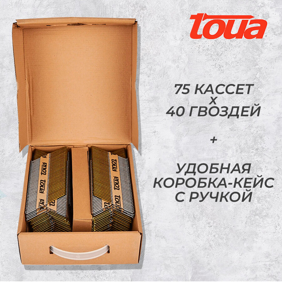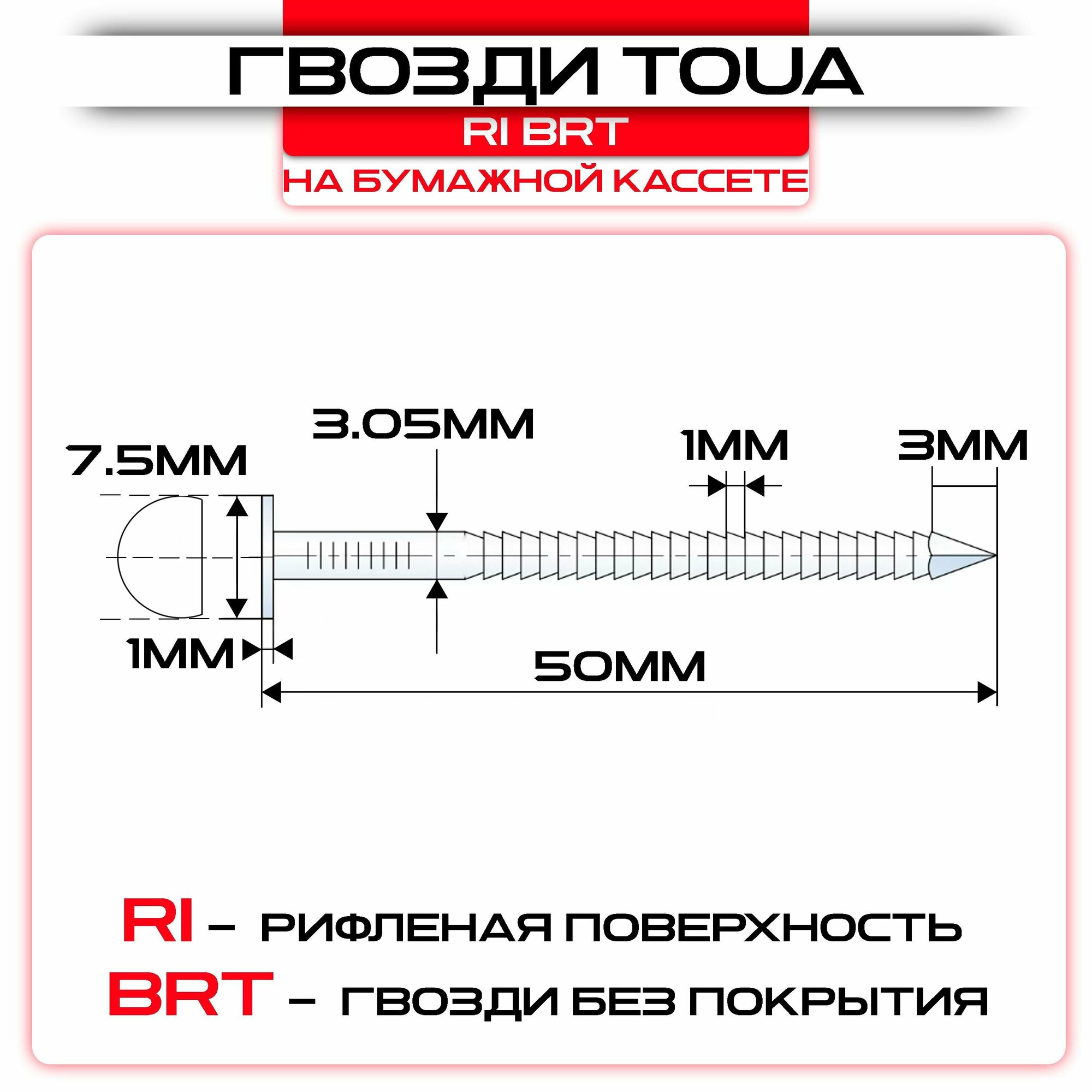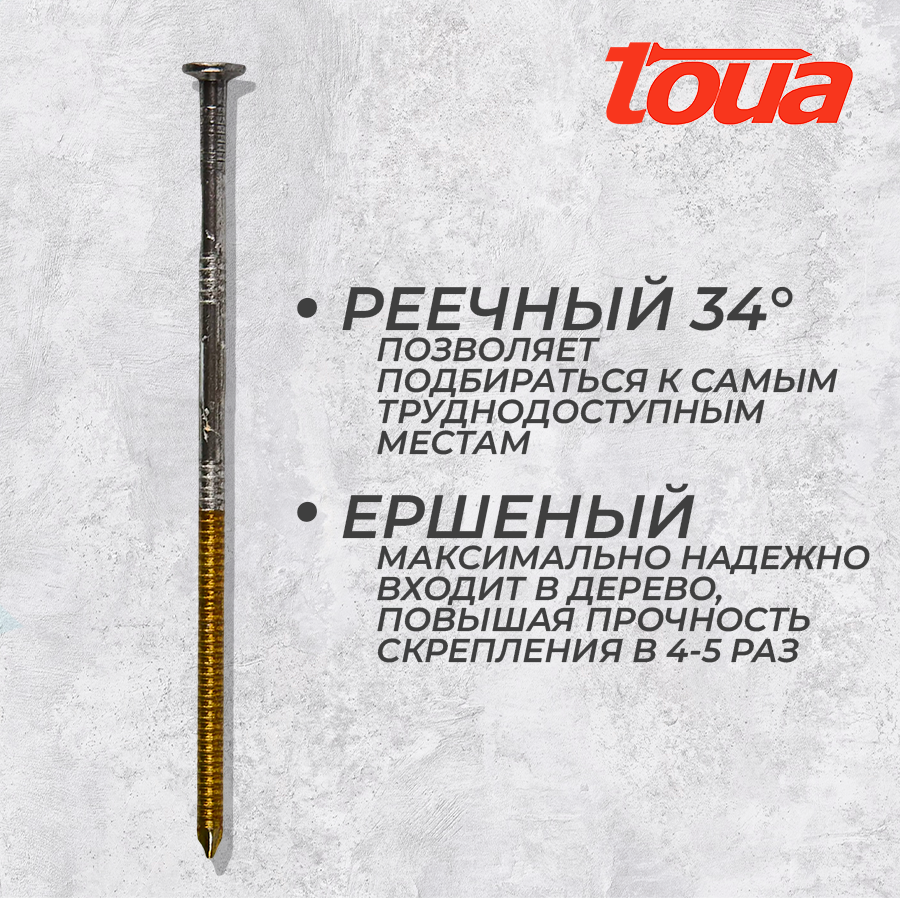 Гвоздь по дереву Toua D34 2,87х50 мм Ri Brt, 3000 шт, для монтажного пистолета, нейлера интересное: