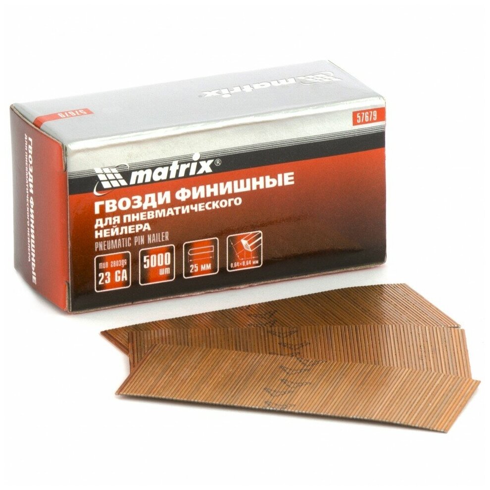 MATRIX Гвозди финишные, (шпильки) 23GA для пневматического нейлера финишного D 0,64 мм, длина 25 мм, 5000 шт Matrix, ( 57679 ) интересное: