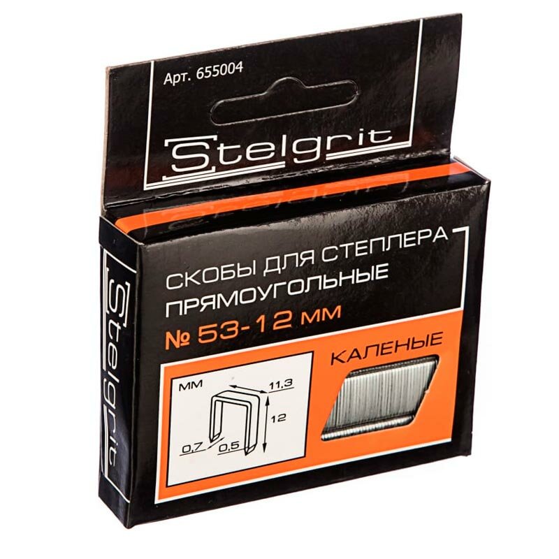 Скобы для степлера тип 53 Stelgrit 6x0,7 мм, мебельные, каленые 1000 шт./уп.