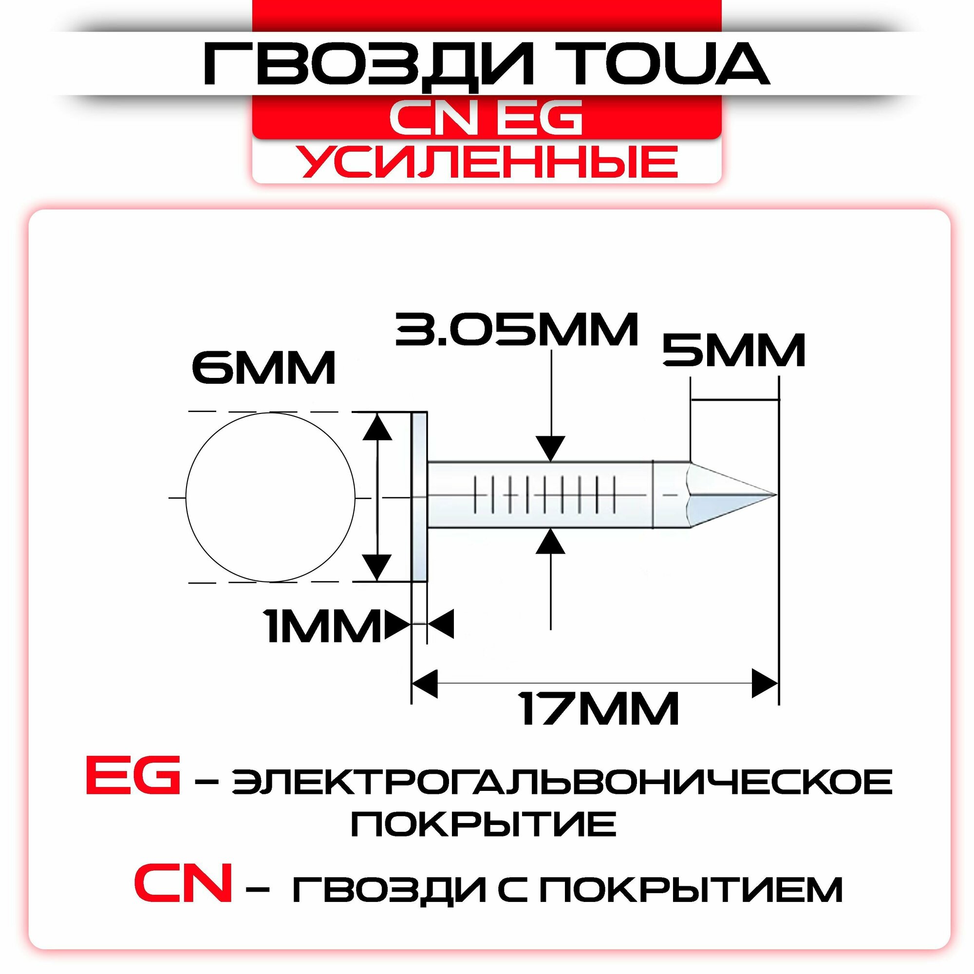 Усиленные гвозди по бетону и металлу Toua CN EG bullet point 3,05х17 мм (1000 шт)