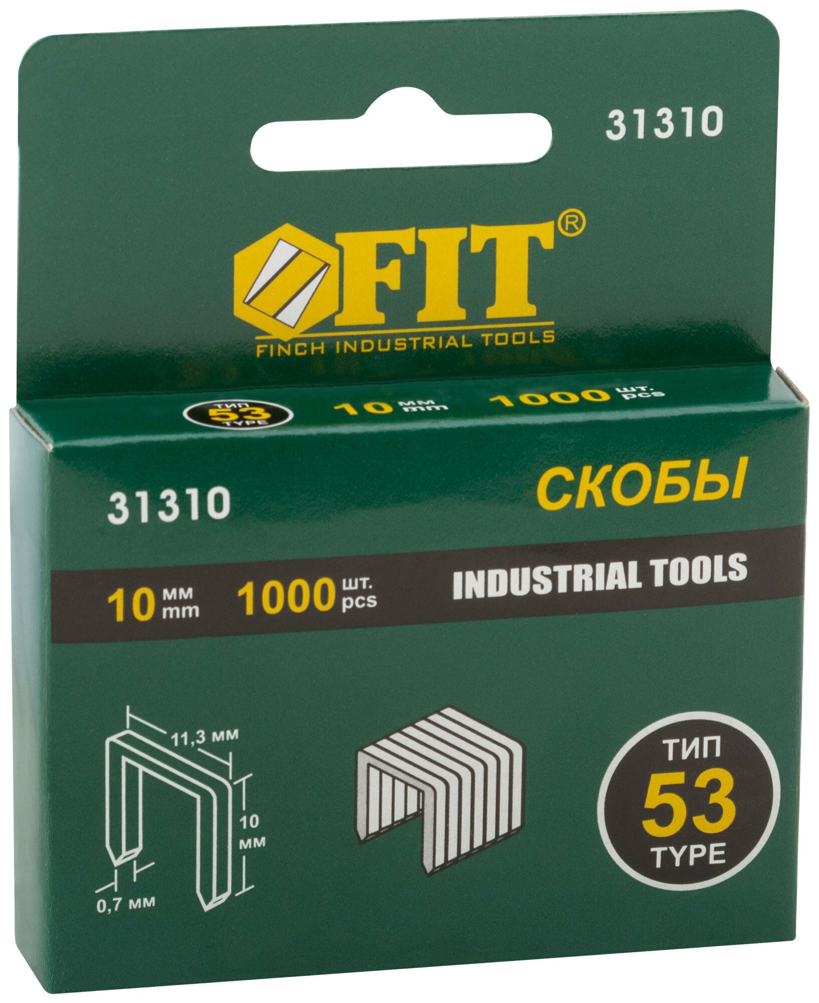 Скобы для степлера FIT 31310 закалённые прямоугольные 11,3 мм х 0,7 мм (узкие тип 53) 10 мм, 1000 шт.