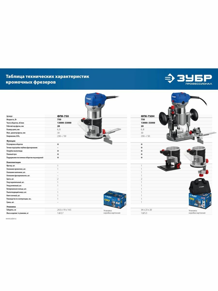 ЗУБР 750 Вт, 3 основания, сумка, кромочный фрезер ФПК-750Н Профессионал интересное: