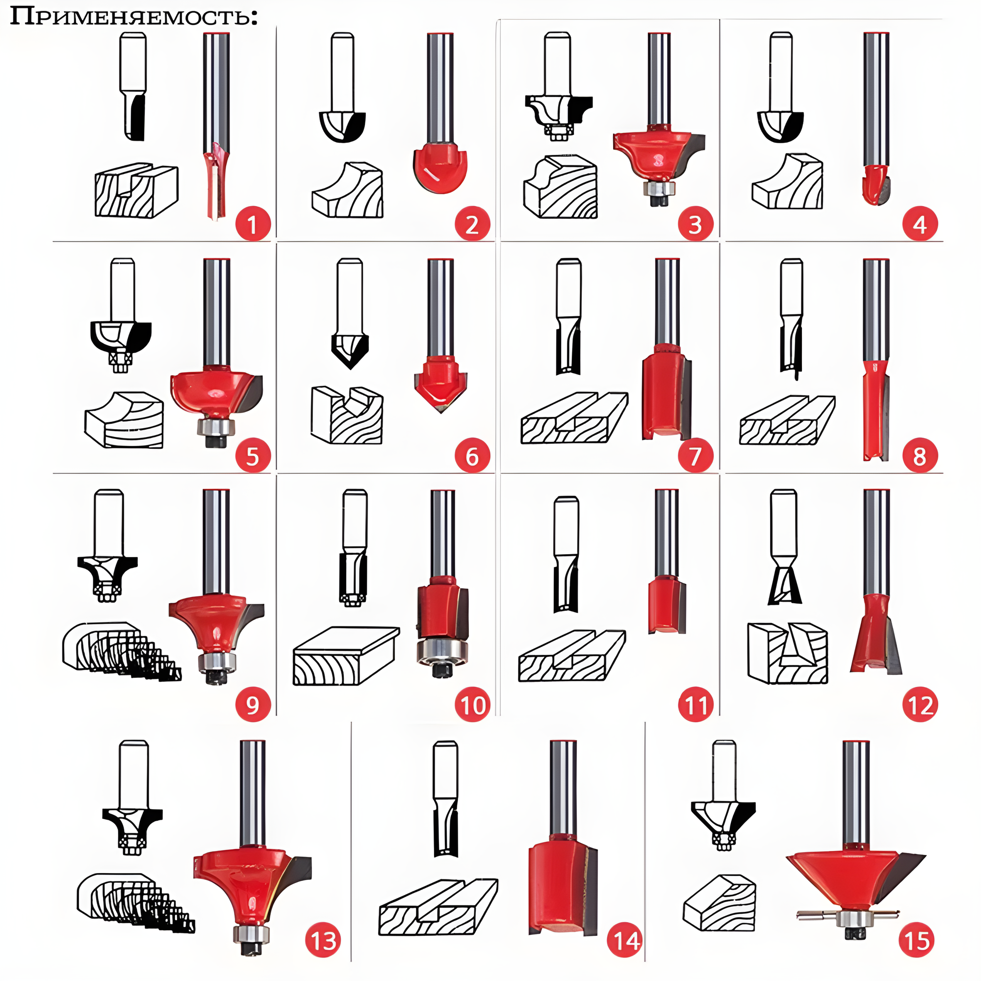 | Количество фрез в комплекте | 15 шт. |