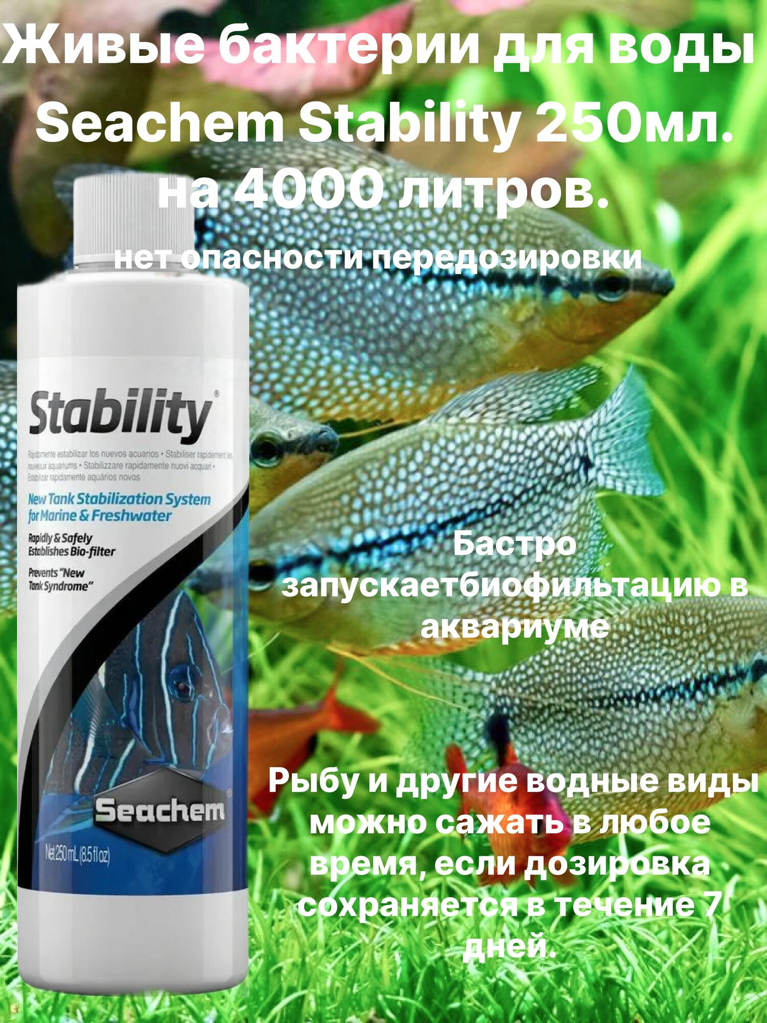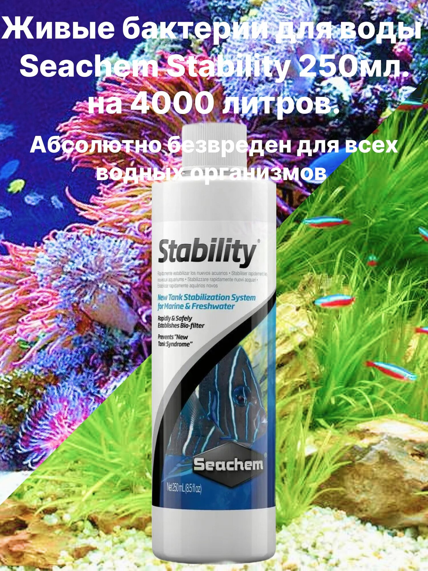 Купить Бактерии Seachem Stability 250мл на 4000л - живые бактерии для воды, расход 5мл на 80л для морской и пресной воды