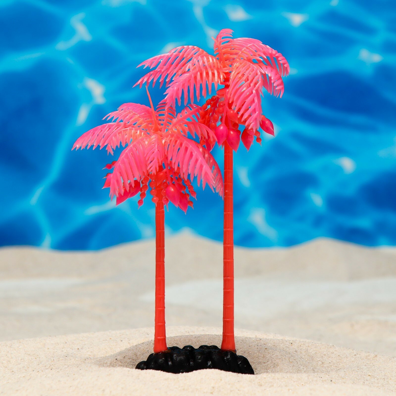 Растение искусственное аквариумное "Пальма", светящееся, 18 см, красное интересное: