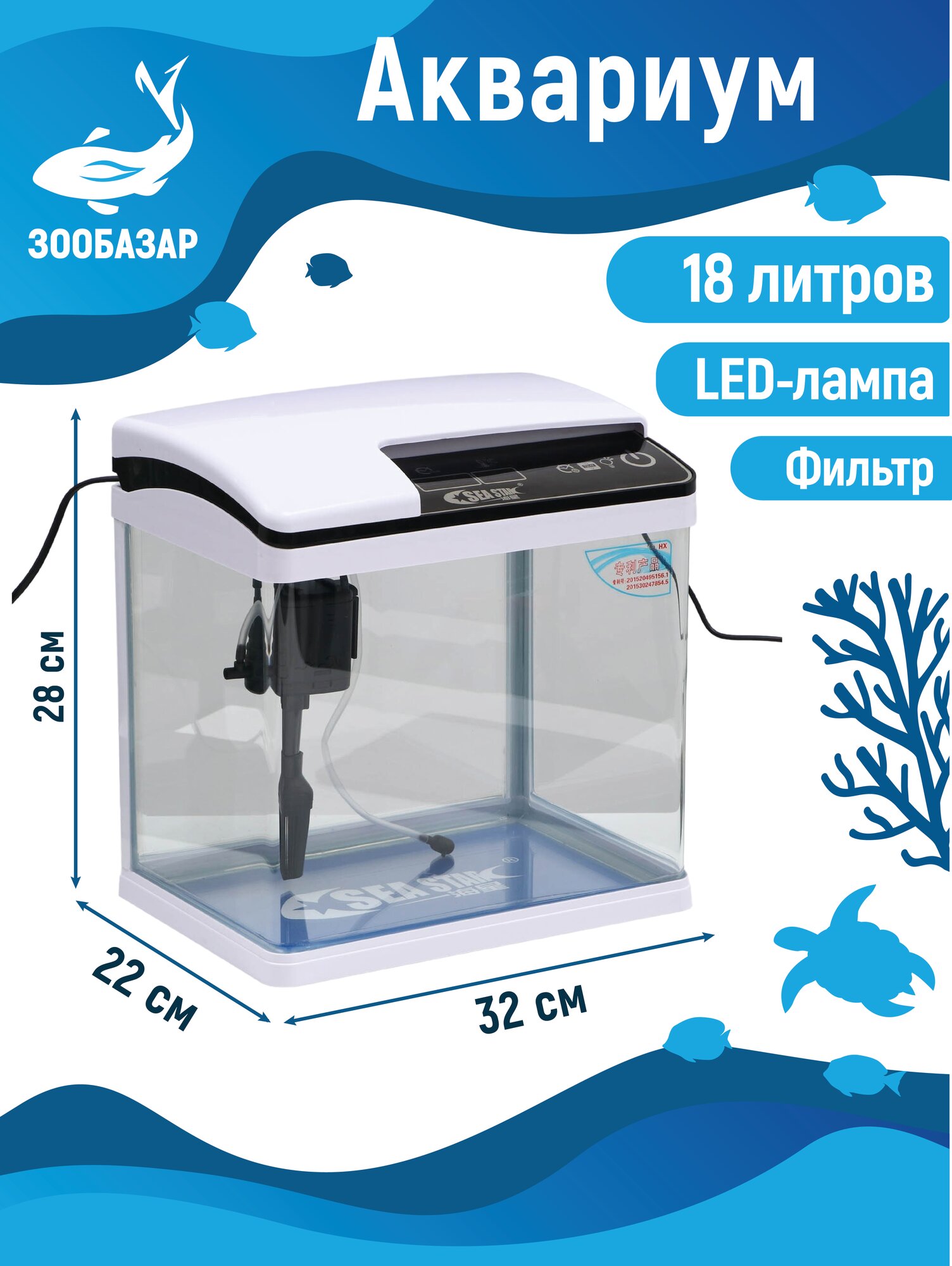 Аквариум SeaStar HX-319F в комплекте: LED-лампа, фильтр, 18 л, белый интересное: