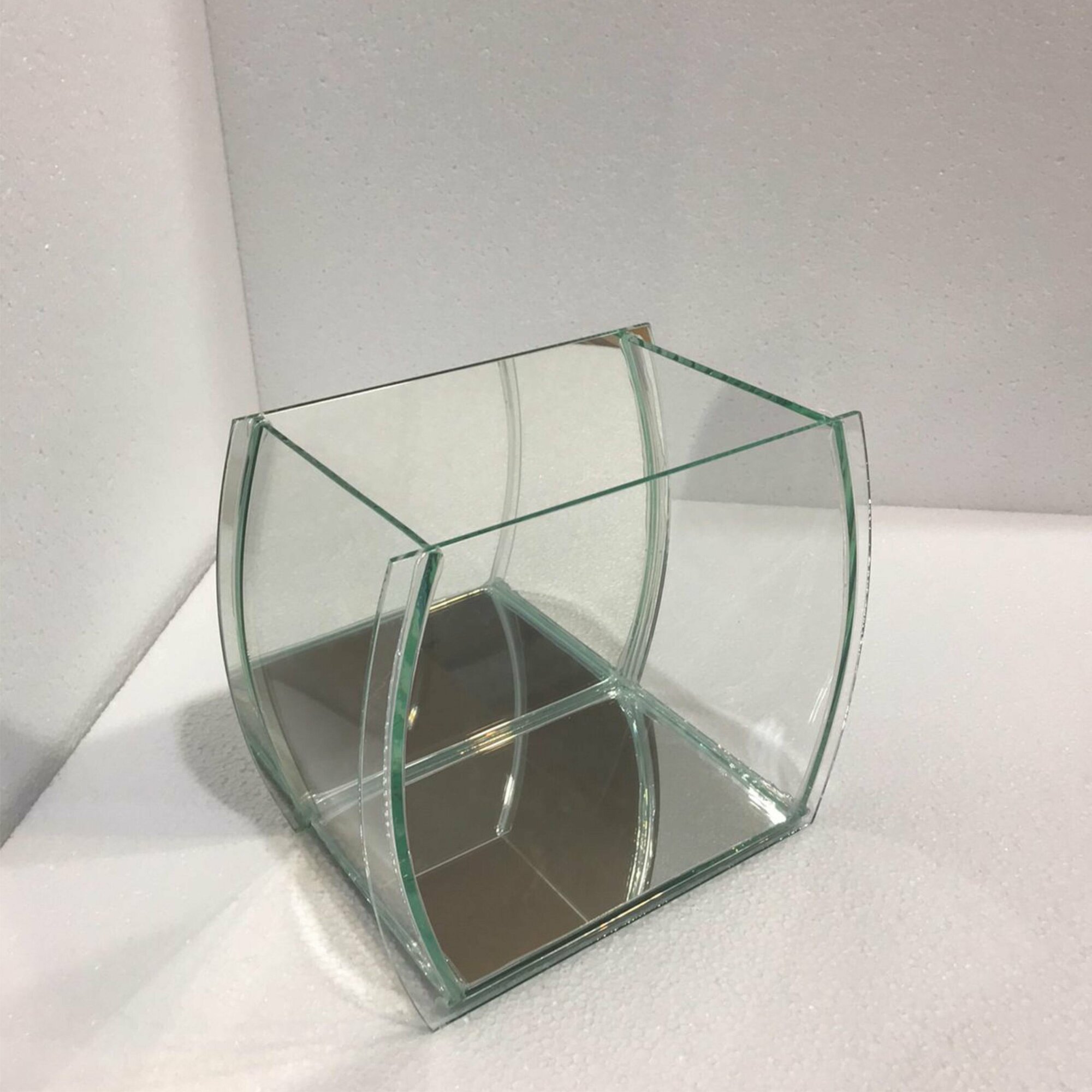 Аквариум фигурный, 5литров, 20х22х16см, гнутое стекло, зеркальная стенка, без крышки, для петушка, креветок.