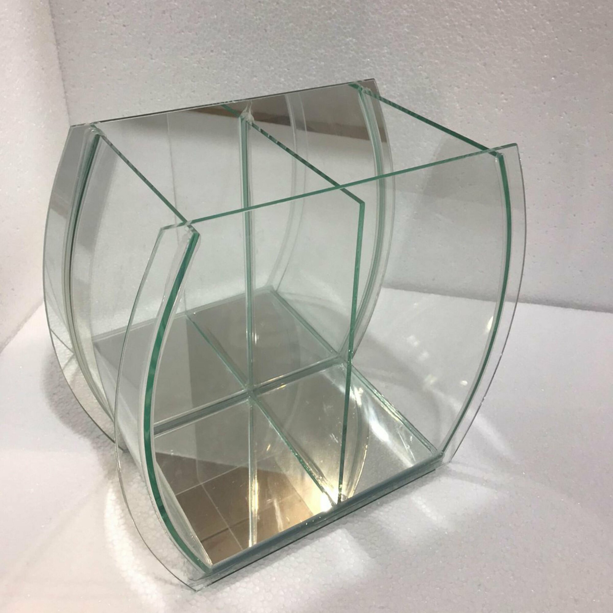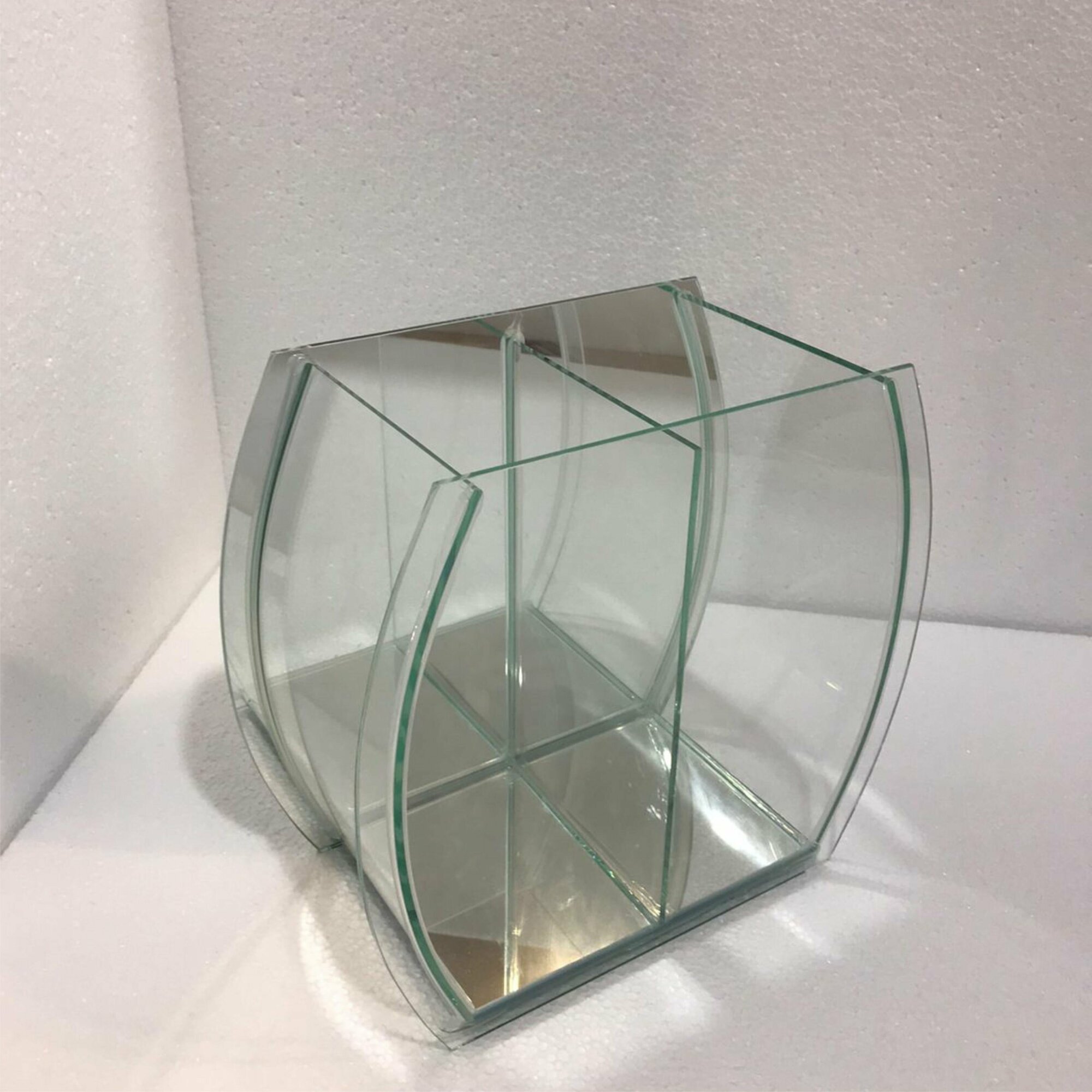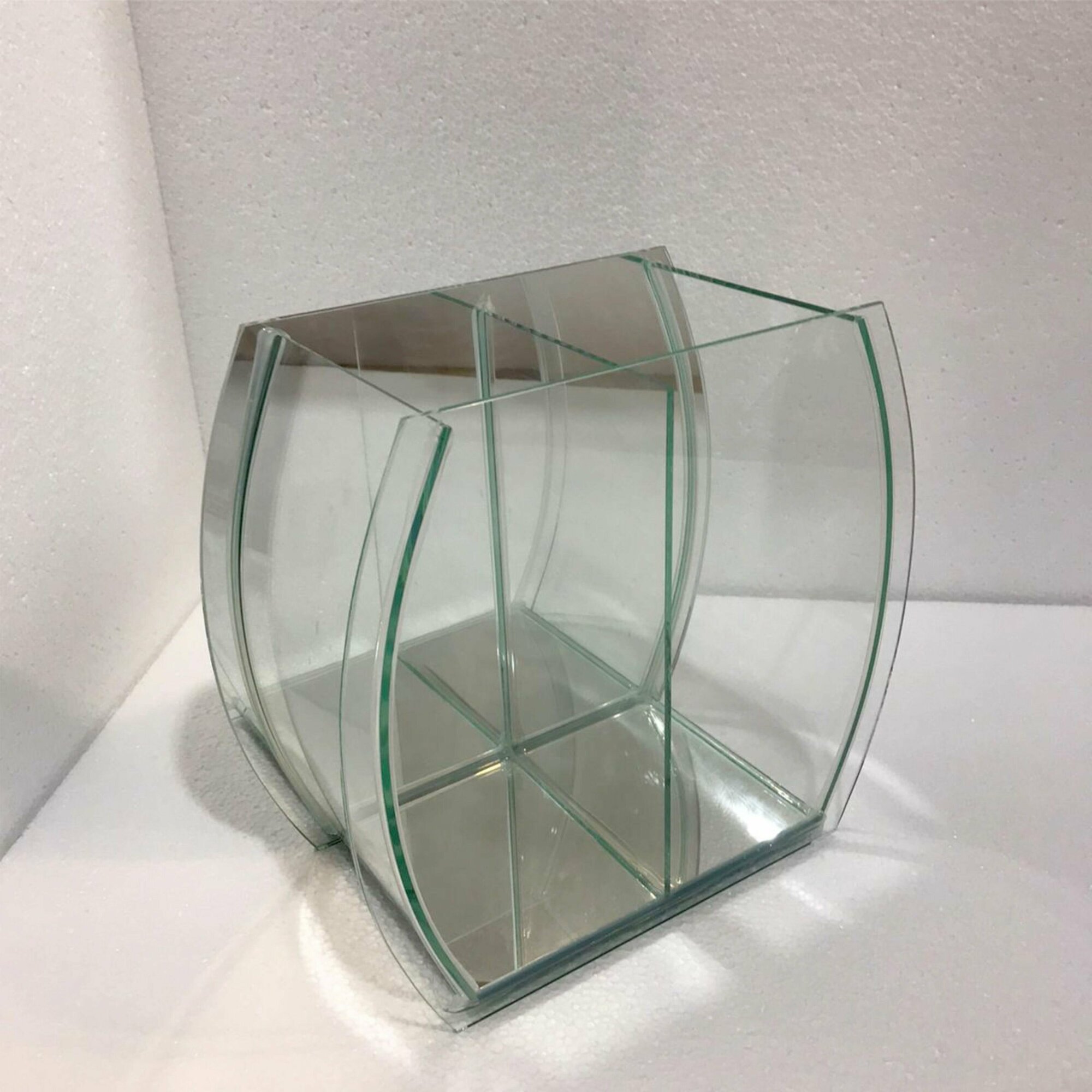Аквариум фигурный двойной, 7литров, 24х28х16см, гнутое стекло, зеркальная стенка, без крышки, для петушка, креветок.