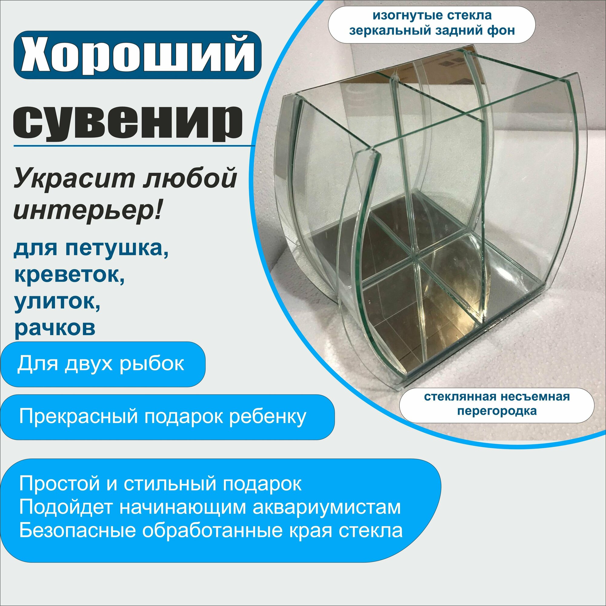 Купить Аквариум фигурный двойной, 10литров, 30х32х16см, гнутое стекло, зеркальная стенка, без крышки, для петушка, креветок.
